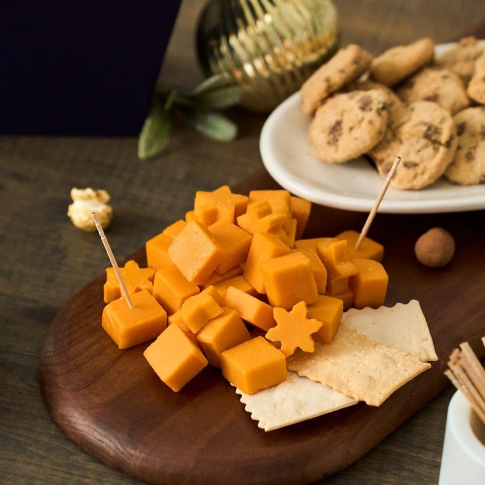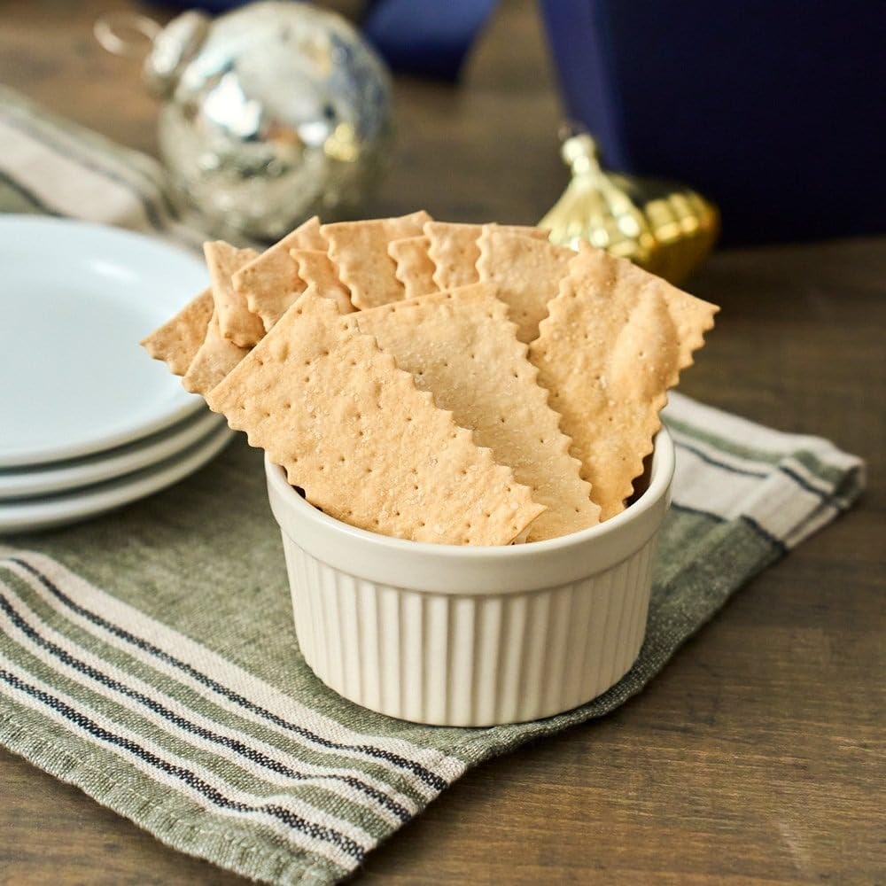 - Gourmet holiday treats include our exclusive Sea Salt & Cracked Pepper Kettle Corn (4 oz), peanut butter chocolate chip cookies (2 oz), cheddar cheese (6 oz), organic olive oil sea salt crackers (0.7 oz x 2), a blue patterned magnetic closure box, and cocoa dusted almonds (4 oz)!
