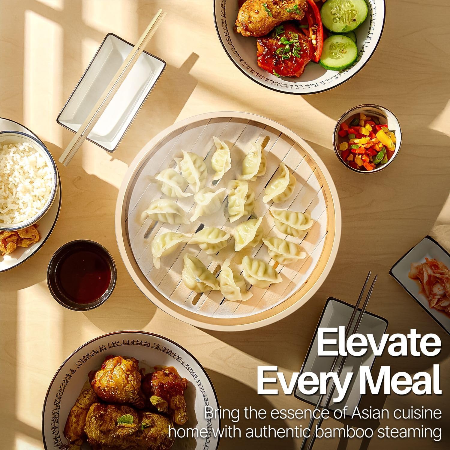 - Versatile and Easy to Use: Perfect tool when cooking authentic Chinese Dimsums, Japanese Rice for sushi, Thai mango sticky rice, or even steamed meat and vegetables. Simply put the steaming Basket at a top of a boiling pot and let it steam for a few minutes. Enjoy an authentic Asian Dish at the comfort of your home