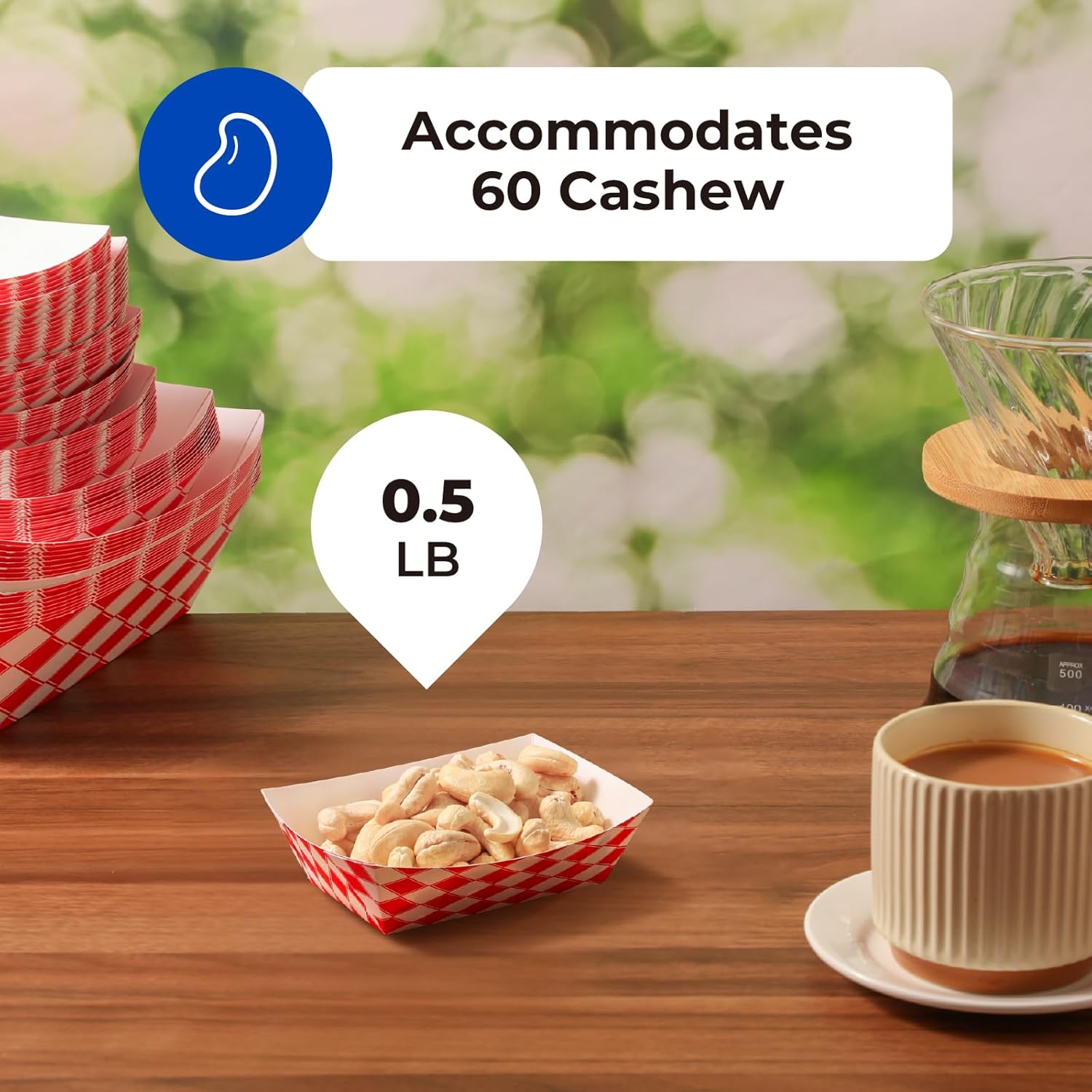 Fit Meal Prep [250 Pack 0.5 lb Paper Food Boats Heavy Duty Disposable Food Trays, Red Check Nacho Tray for Parties Fairs Picnics Carnivals, Holds Ketchup Cheese Sauce Pickles
