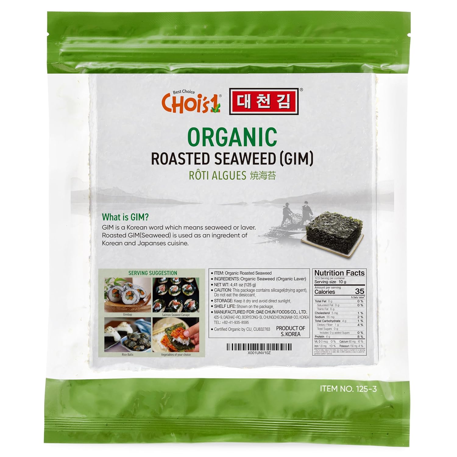 CHOI's 1 Organic Roasted Seaweed, Gim, Sushi Nori/ (50 full sheets)/ Product of Korea/ Gold Grade- Vegan, Keto, Gluten Free, Full of Fiber, Vitamin, Mineral, High protein, Omega 3's