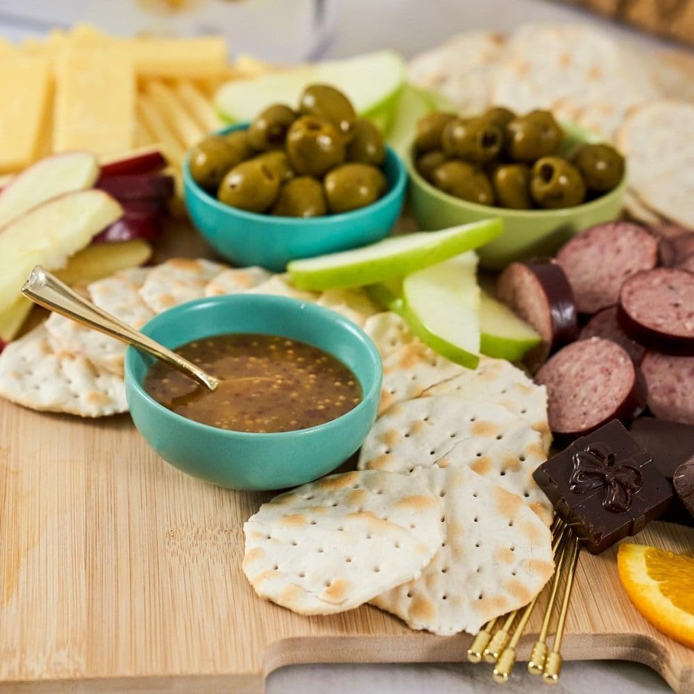 - garlic sausage (5 oz), raspberry honey mustard (4 oz), lemon garlic olives (4 oz), cinnamon glaze almonds (4 oz), butter peanut crunch (3 oz), peppercorn & poppy crackers (4.4 oz), dark chocolate cocoa dusted almonds (2 oz), basil & garlic olives (4 oz), and assorted chocolates (4 pieces)!