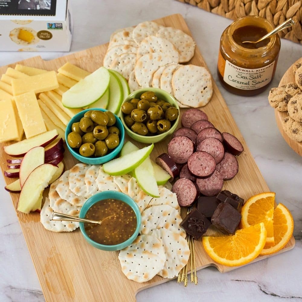 - Includes 9 orchard fresh fruits (red apples, oranges, pears, green apples), Sea Salt Caramel Sauce (12.25 oz), water crackers (4.4 oz), Cabot Vermont cheddar cheese (8 oz), chocolate chip cookies (4 oz), red velvet cookies (1 oz),