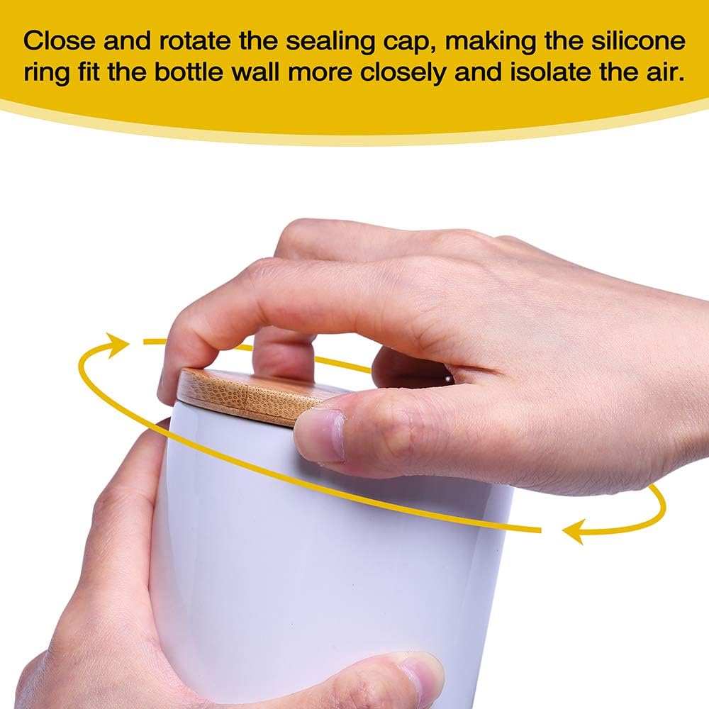 - DIMENSION & CAPACITY - The Food Canister is 4.3*3.1 inches (11*8 cm)(H*D,included the lid), the capacity is 10.1 fl oz. Light glaze finished, easy to clean, looks neat and fancy sitting on the counter