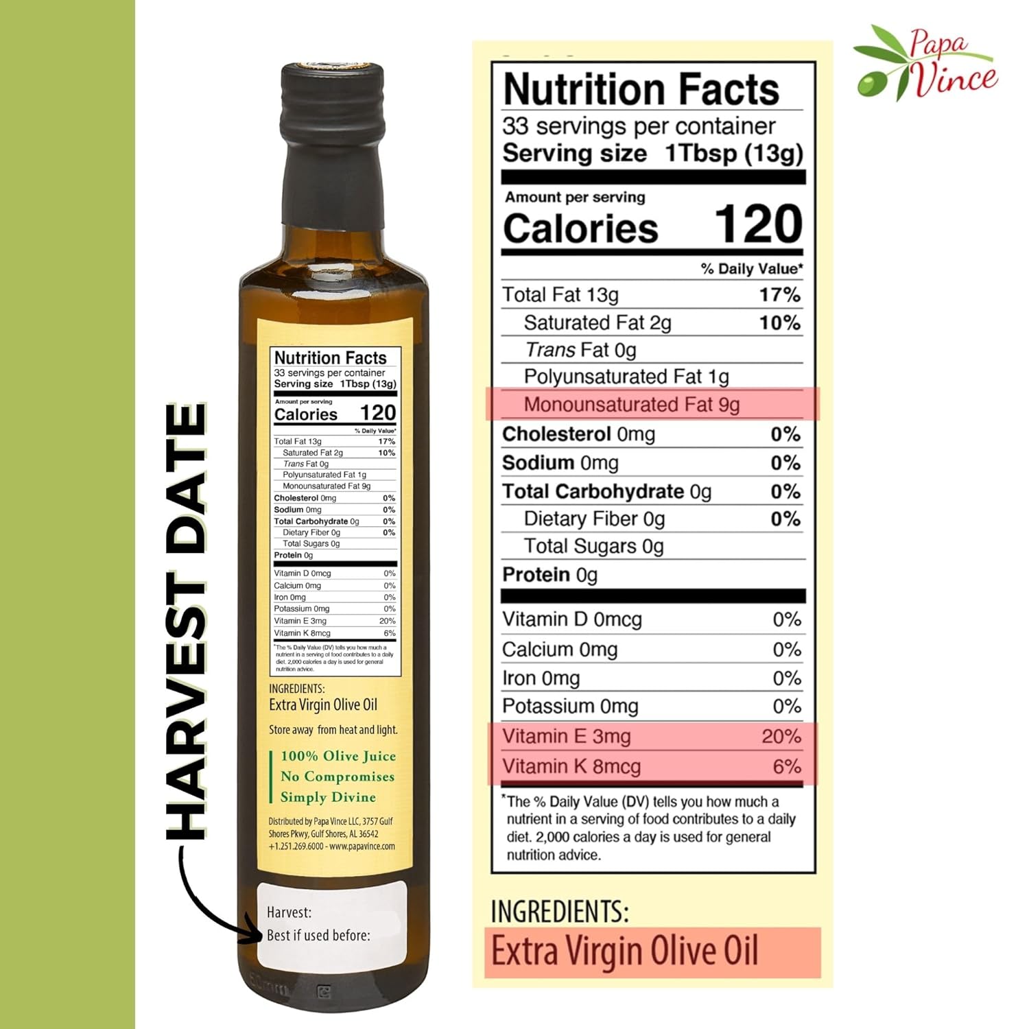 Papa Vince Olive Oil Gourmet Gift - Dipping Olive Oil, First Cold Pressed, Extra Virgin, Premium Harvest, Peppery finish, Bread Dipping Olive oil. Great for Drinking and Drizzling. Family-owned, Sicily Italy