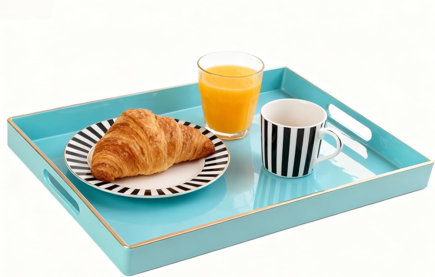 - Vibrant Color - Chic rectangular shape fully covered with glossy blue coating with gold top edge, this outstanding decorative tray can easily make your things more stunning, adding a classy and energetic touch.
