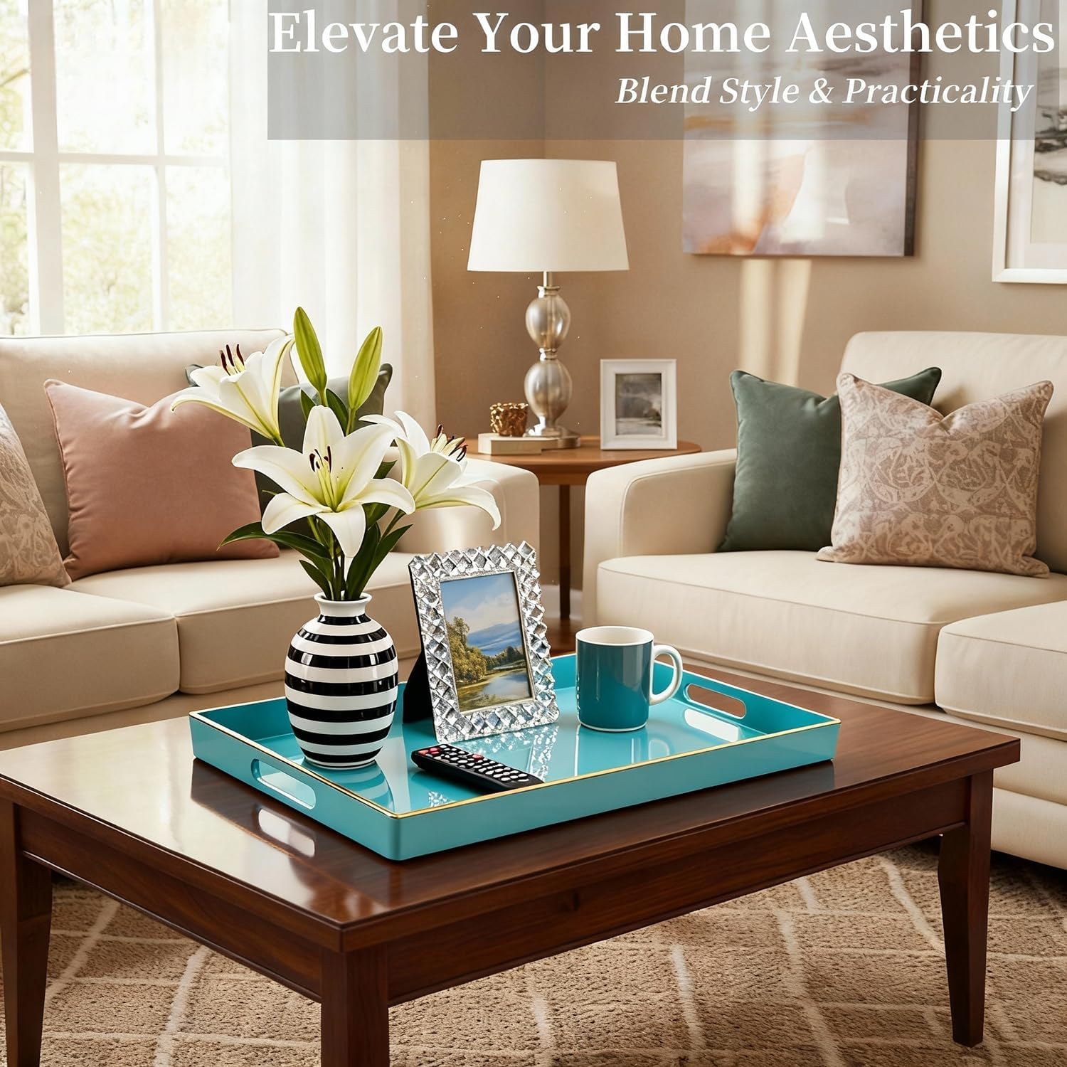 - Useful for All - With its gorgeous look and multiple functions, this will be a pretty accent tray to ottoman, coffee table, dining table, nightstand, vanity table etc. Except for daily use, it¡¯s also a reliable helper for different occasions like Christmas, birthday, wedding, baby shower, housewarming and other parties.