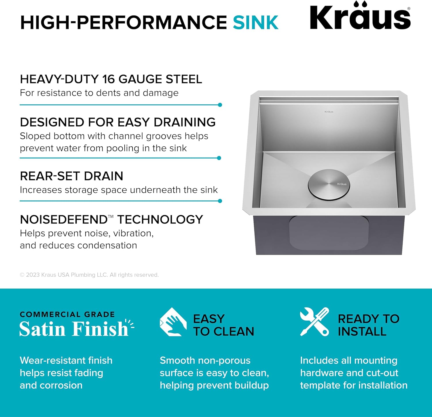 - HEAVY-DUTY 16 GAUGE SINK: Designed for lasting durability, high-performance TRU16 gauge stainless steel sink stands up to everyday use with great resistance to corrosion, dents, and damage