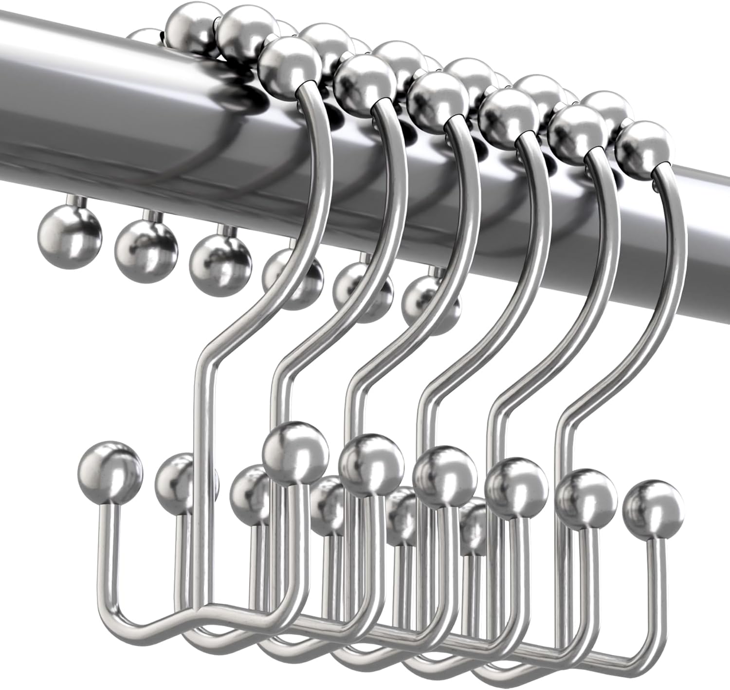 - Smooth gliding - Engineered spherical roller balls of shower curtain hooks can glide smoothly and fast across shower rod.