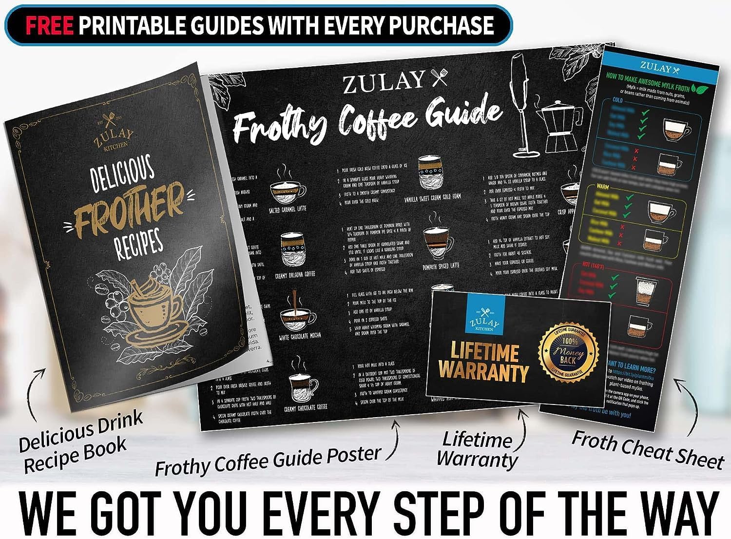 - HASSLE-FREE, ZULAY GUARANTEE: We love and take pride in our coffee whisk frother and back this up with a lifetime guarantee. If there are ever any issues, just contact us, and we will make it right. Experience love at first sip with the best coffee made with this electric frother.