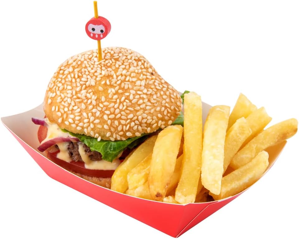 - STYLISH DESIGN: Serve your treats with style! Featuring a bold red finish, these paper trays are great for displaying meatballs, onion rings, cookies, and other bite-sized foods.