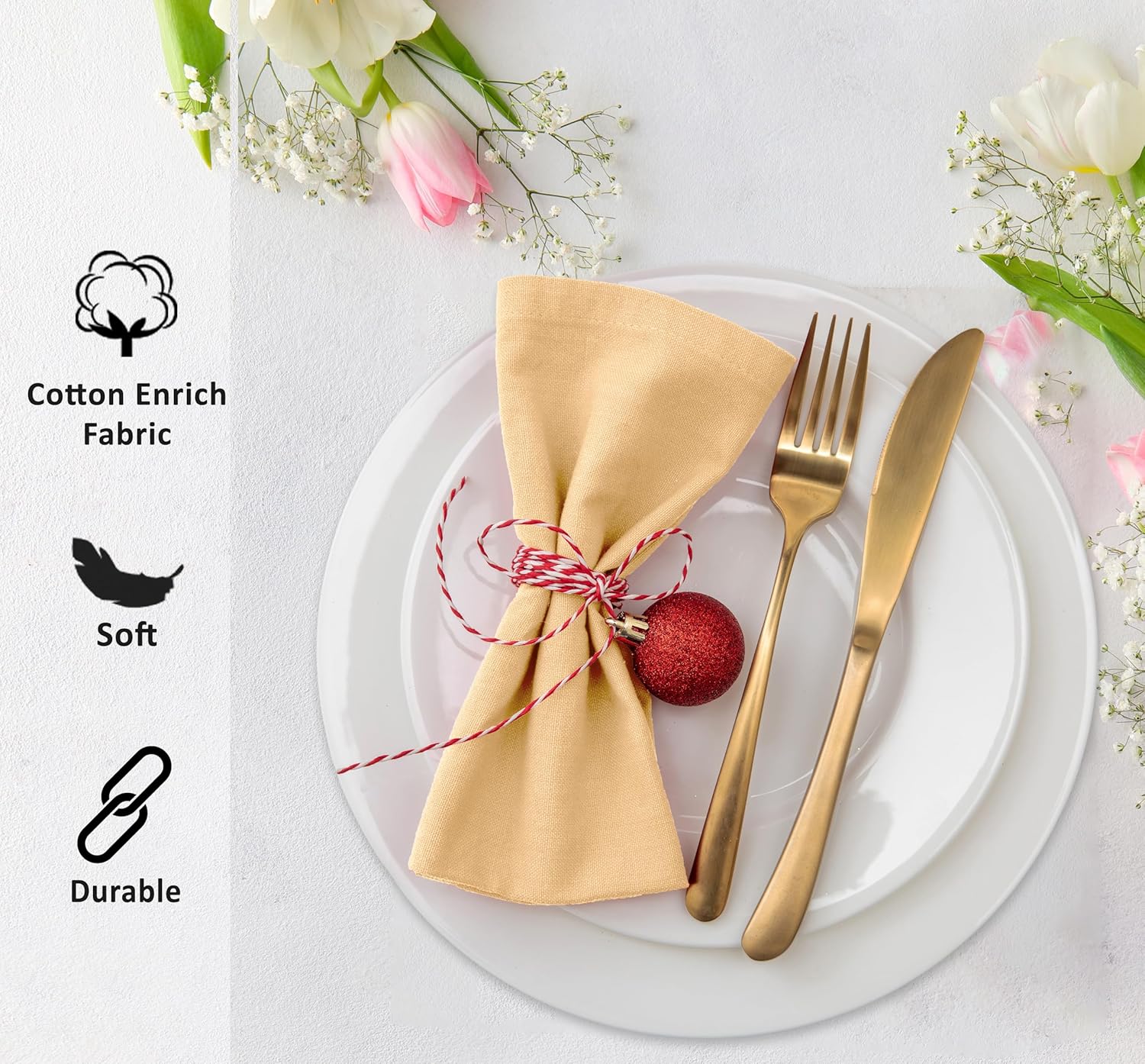 - Durable and Long Lasting: Our Cloth Napkins are made with Cotton Enrich Fabric which is Soft, Absorbent, Durable, Wrinkle, and Fade Resistant. These Waterspout Dinner Napkins will certainly Bring lovely charm to your dining experience with a light but cozy feel on your Dinning table.