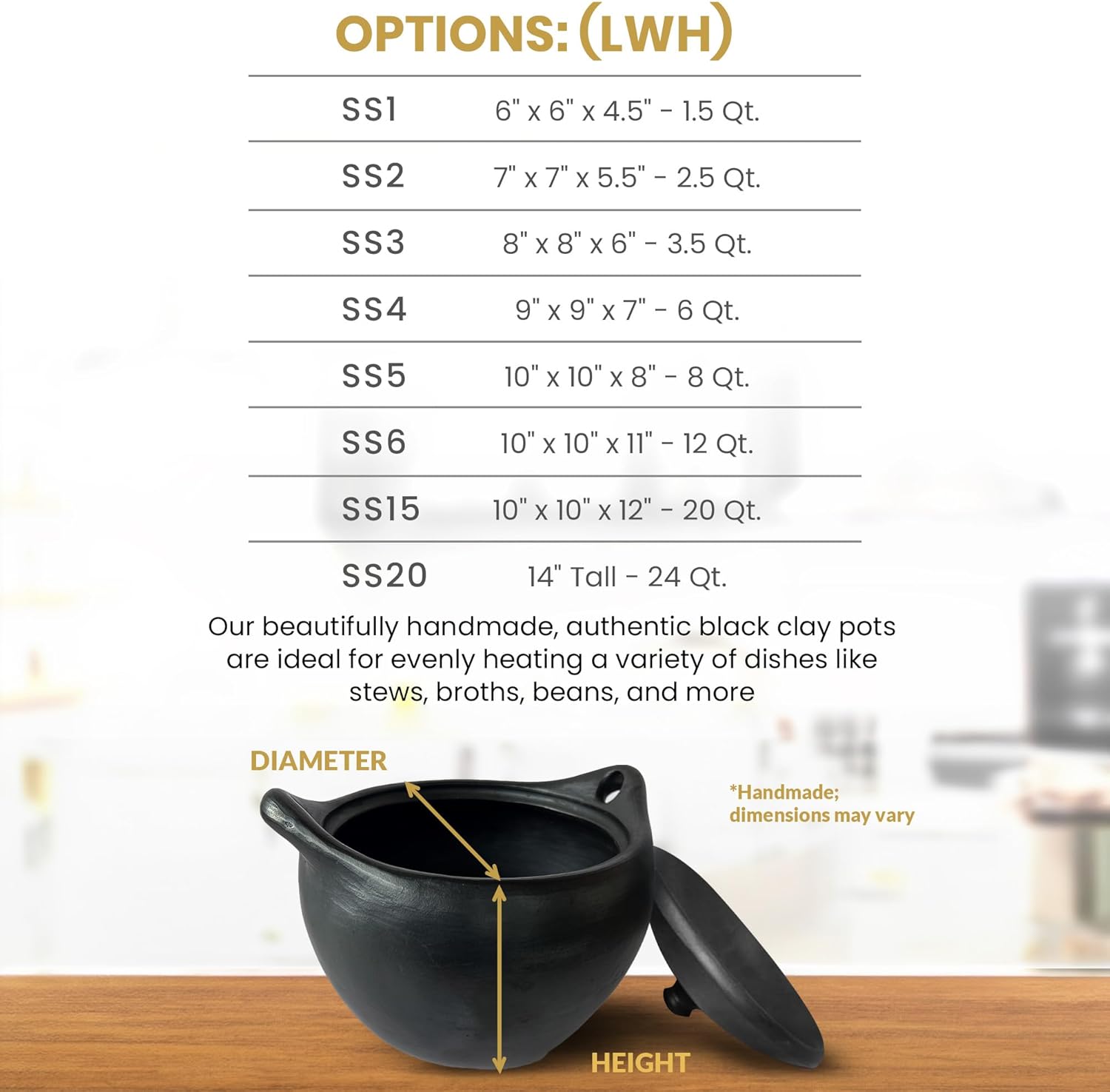 - HANDMADE BLACK CLAY POT WITH LID: Elevate your cooking with this exquisite 2.5-Quart Extra Large Pot handmade earthenware pot from Toque Blanche. Crafted by skilled artisans in Central Colombia, this versatile clay pot for cooking is designed with handles and a lid, perfect for preparing and serving dishes like soups, stews, and more.