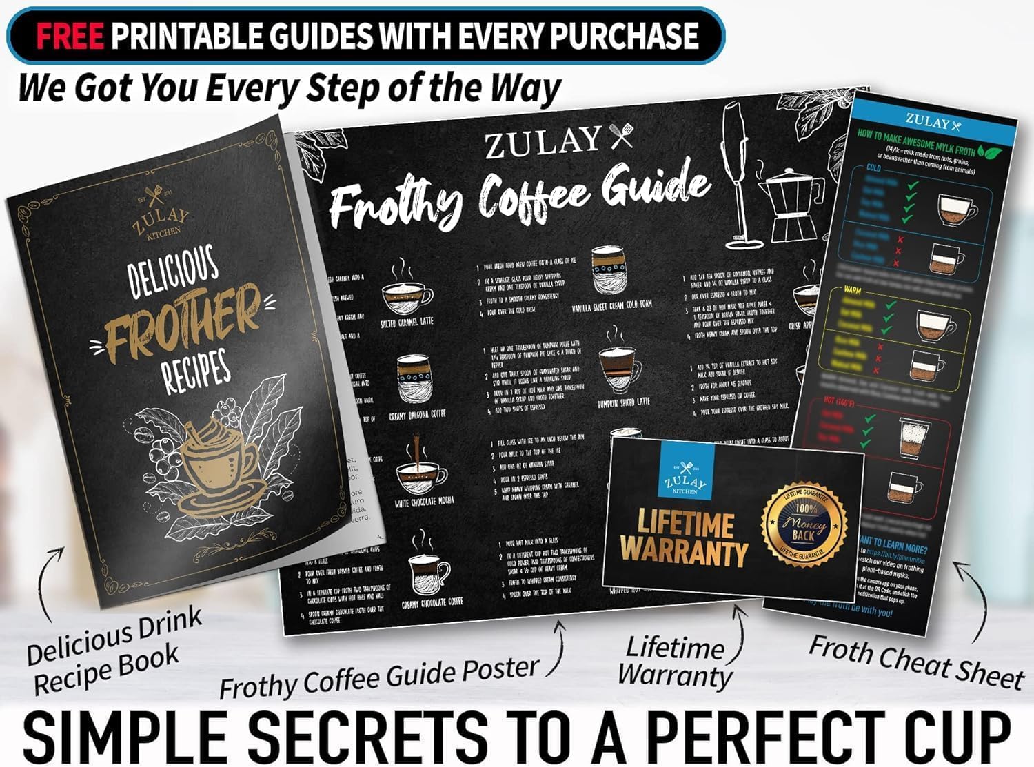- No Hassle, Zulay Guarantee: We love and take pride in our milk frother and we back this up with a lifetime guarantee. Have the confidence that this frother will last, if there are ever any issues, just contact us and we will make it right. Order now and be assured that this product will live up to your expectations, guaranteed. If it does not make your foam exactly how you want it, we got you covered. Happy Frothing.
