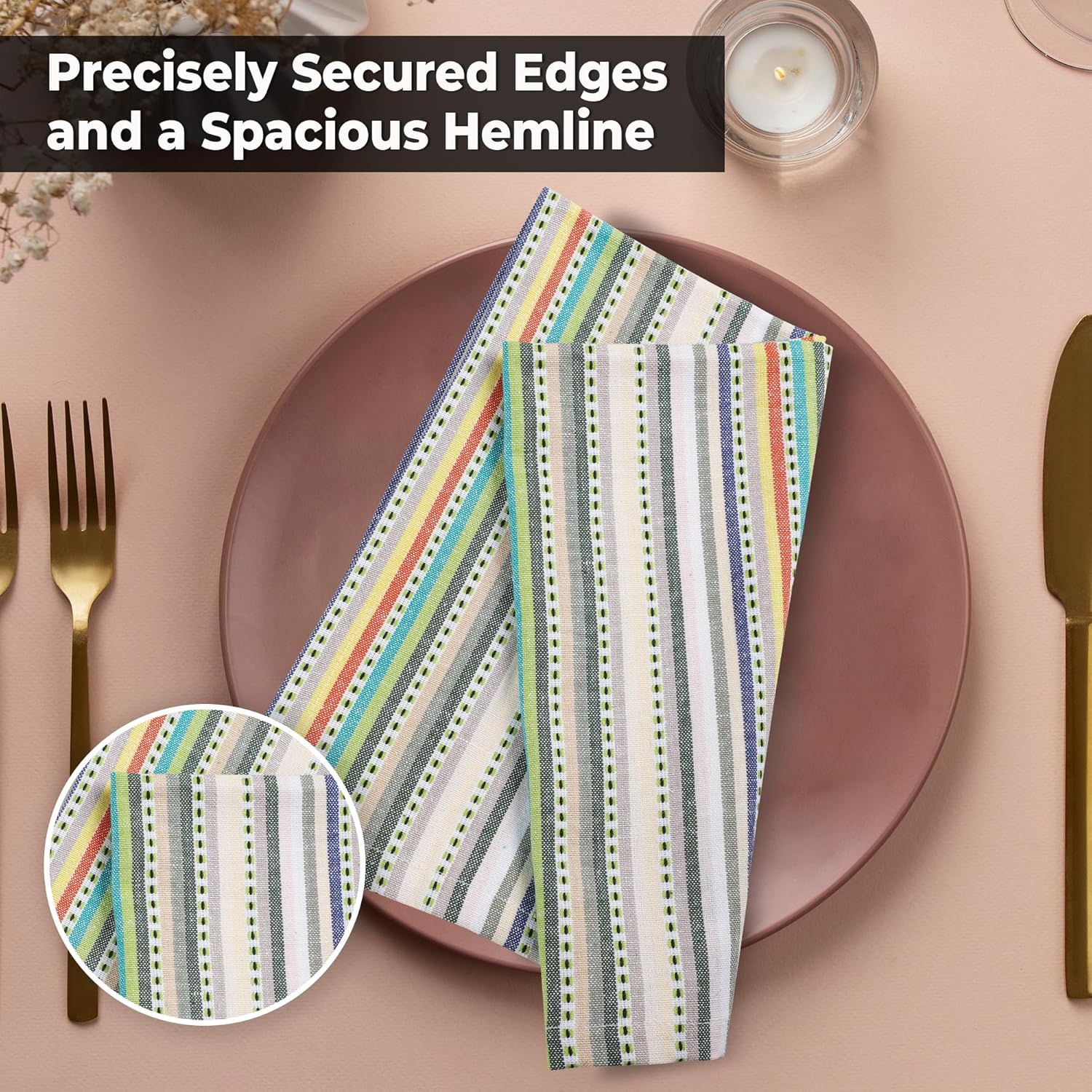 Urban Villa Cloth Napkins Set of 12 20x20 Inches 100% Cotton Napkins Cloth Washable Durable Reusable Absorbent Table Dinner Napkins Cloth for Hotel Lunch Restaurant Weddings Parties – Beige Stripes