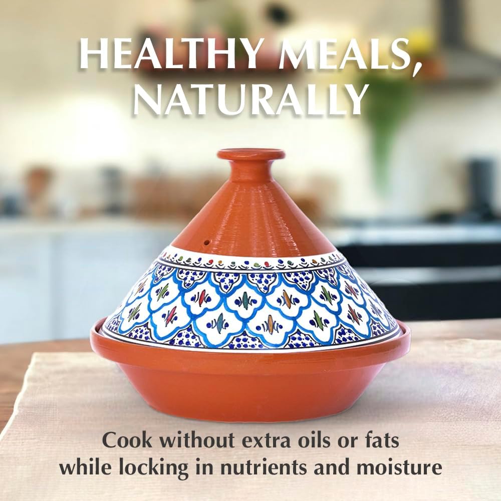 - HEALTHIER COOKING — Enjoy guilt-free, flavorful meals with one of our handmade tagine pots. The slow cooking process of a ceramic tagine preserves nutrients and moisture, reducing the need for oils or fats. Perfect for lean meats, vegetables, and spices, the Moroccan tagine cooking pot method delivers tender, wholesome dishes every time.