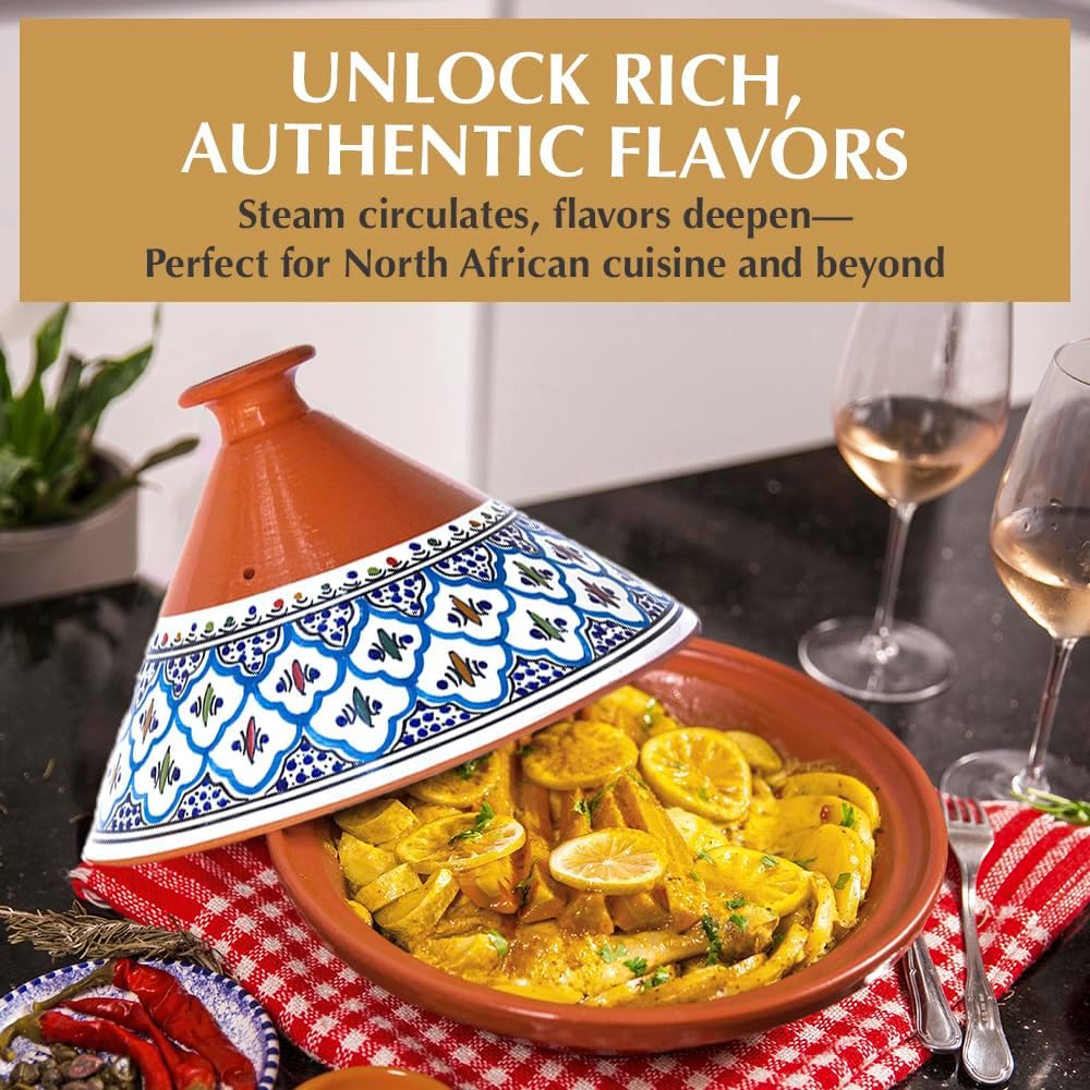 - FAIR TRADE & HANDMADE — Crafted by women artisans in Tunisia, each of our tajine clay cooking pots is a symbol of tradition and ethical craftsmanship. Made from lead-free, non-stick ceramic, these Tagine clay pots for cooking are safe, durable, and designed to enhance the natural flavors of your food. All while supporting fair trade practices in the making of clay cookware.