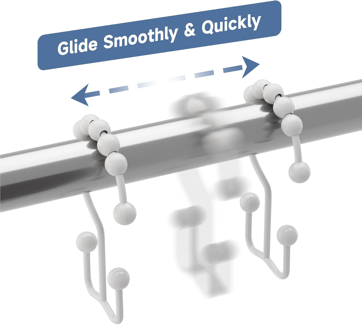 - Smooth gliding - Engineered spherical roller balls of shower curtain hooks can glide smoothly and fast across shower rod.