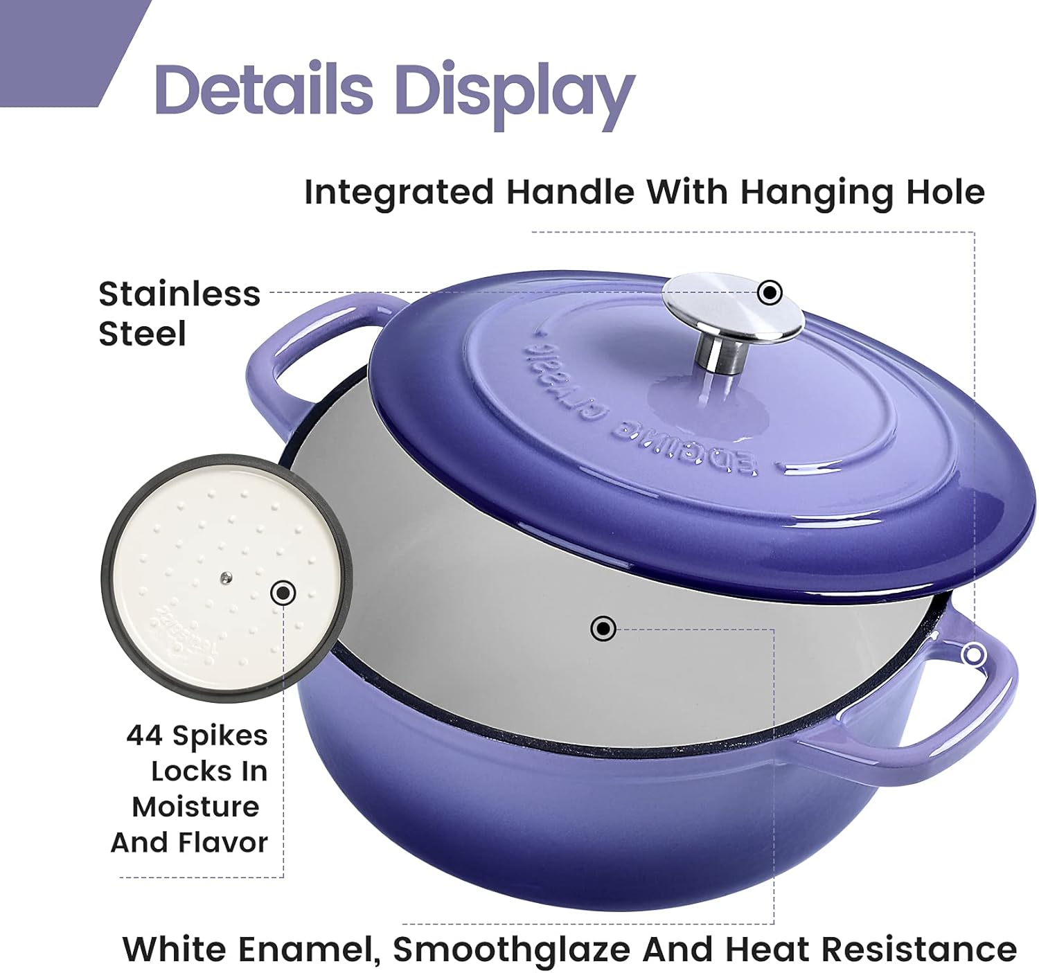 - Self circulation water locking: The dutch oven pot cover is thick and well sealed, which makes it difficult to lose water