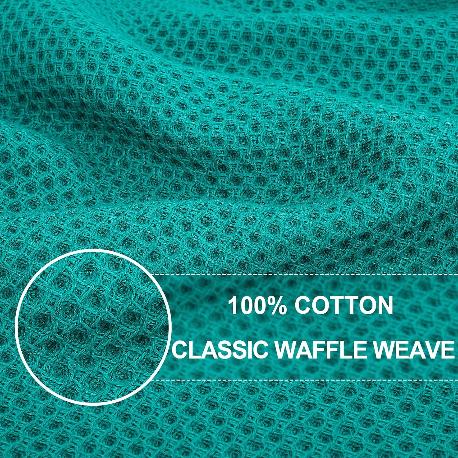 Homaxy 100% Cotton Waffle Weave Kitchen Dish Towels, Ultra Soft Absorbent Quick Drying Cleaning Towel, 13 x 28 Inches, 4-Pack, Teal