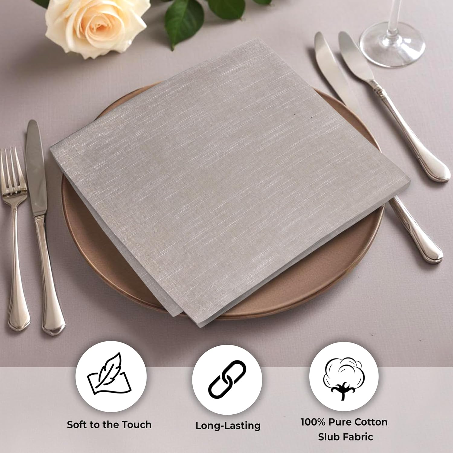 Urban Villa Cloth Napkins 100% Cotton Slub Absorbent Dinner Napkins (Set of 12) Oversized 20x20 Inches Beige White Chambray Soft Durable Reusable Washable Ideal for Everyday Use Premium Quality