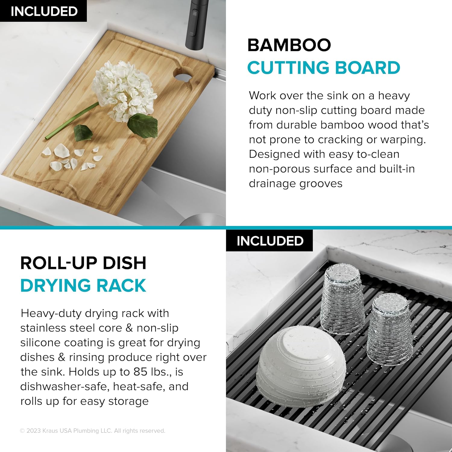 KRAUS Kore 23-Inch Undermount Workstation Single Bowl 16 Gauge Deep Laundry Utility Stainless Steel Kitchen Sink with Accessories, KWU100-23L