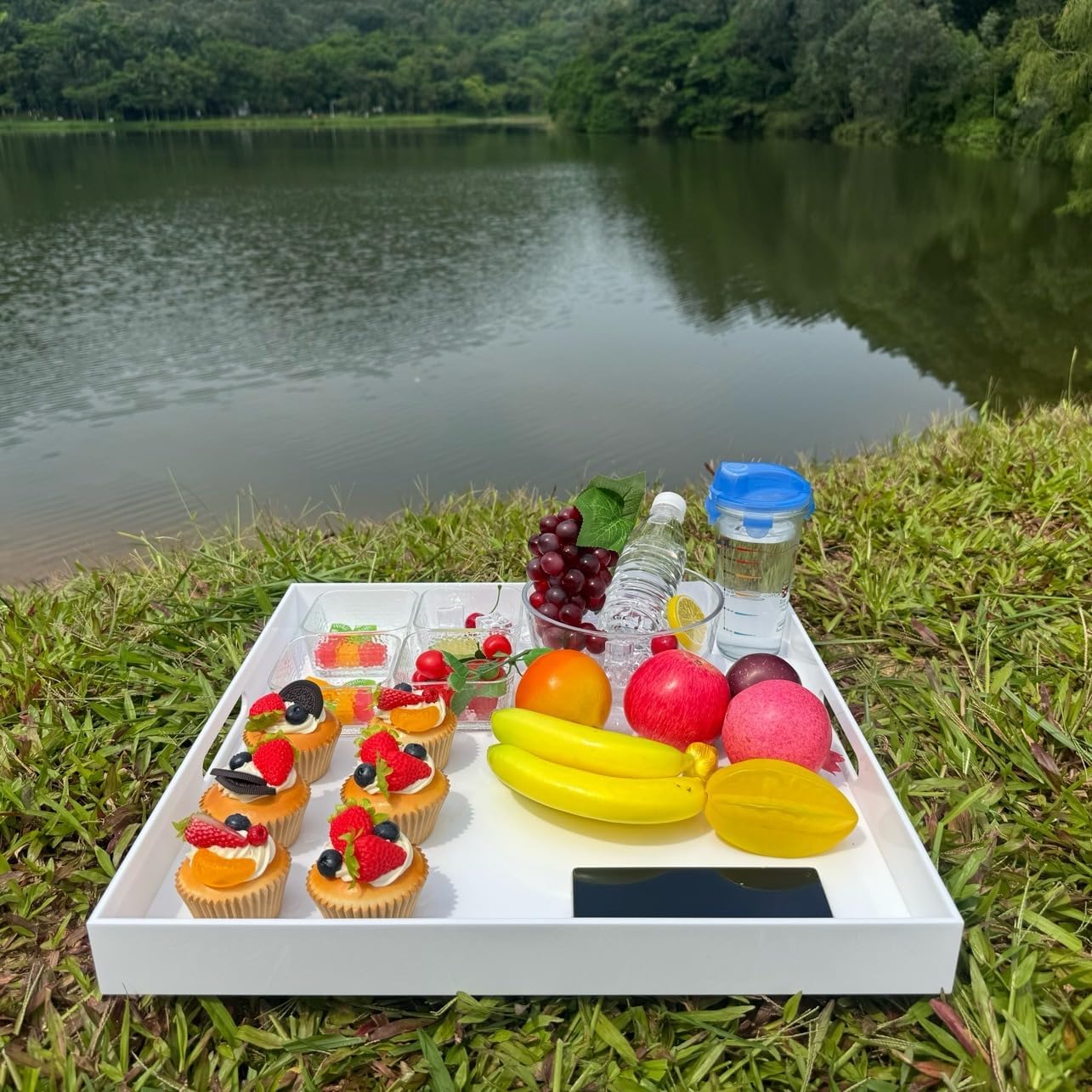 - Multifunctional: Serving tray for serving breakfast, appetizers, coffee, drinks, desserts, snacks, fruit, cheese, food; Decorative organizer tray for cosmetics, jewelry, remote, glasses, ornaments, magazines, Tray can be put on an ottoman, bed, coffee table and couch, It’s elegant to be put on any tabletop or countertop as accessory