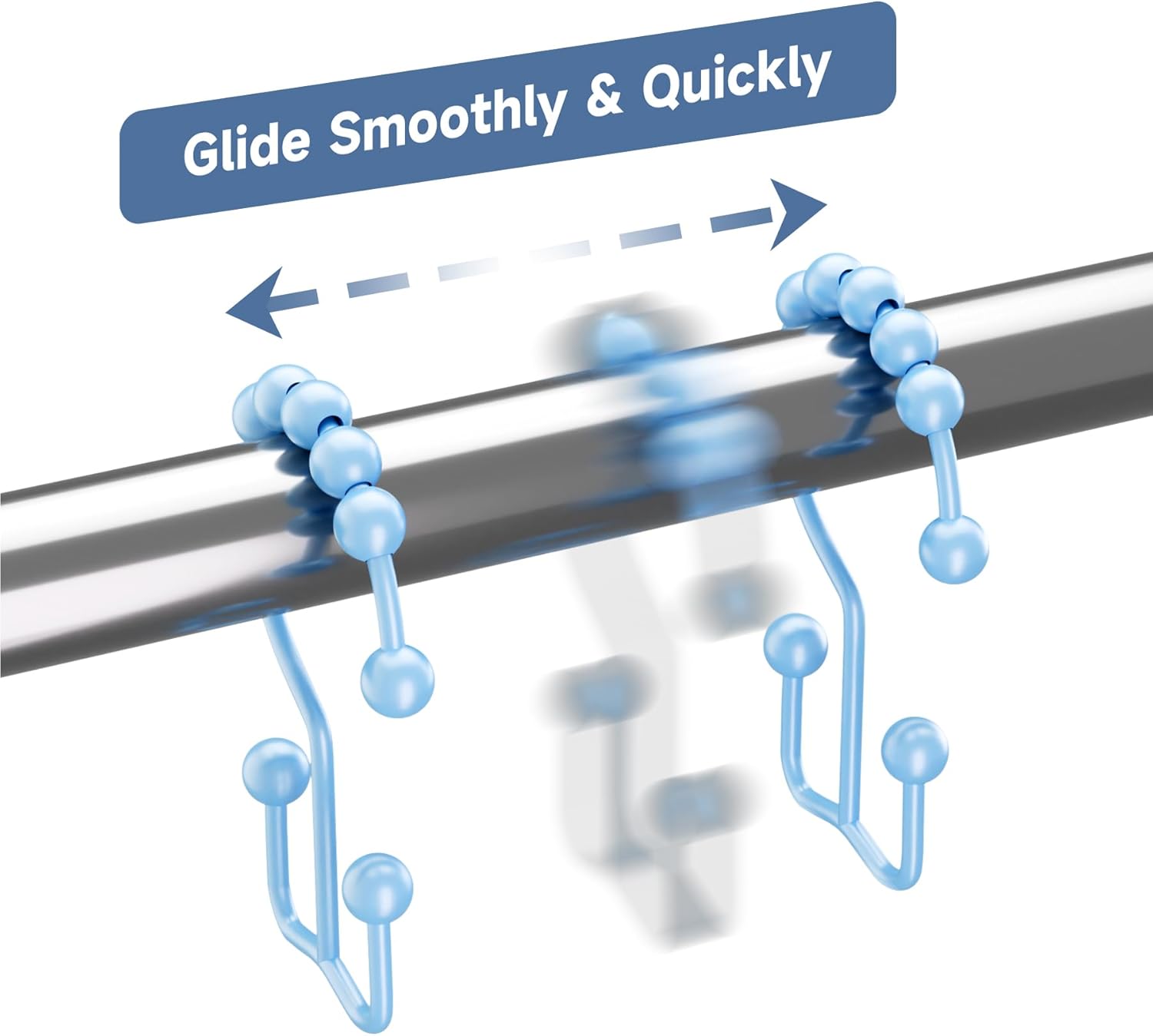 - Smooth gliding - Engineered spherical roller balls of shower curtain hooks can glide smoothly and fast across shower rod.