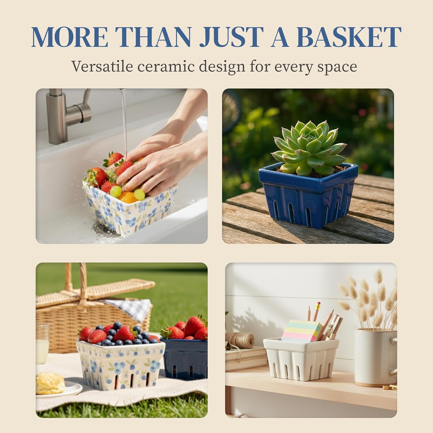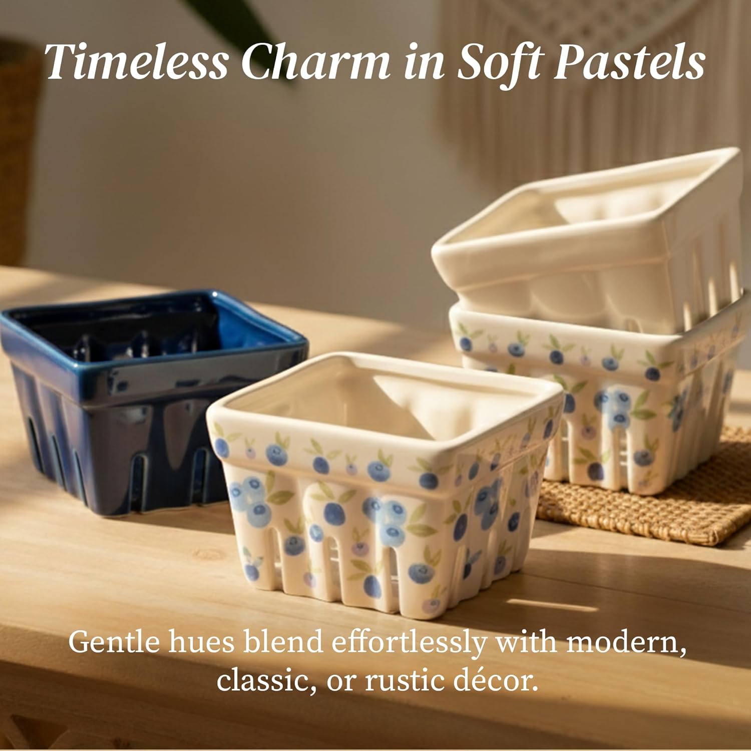 - 🫐𝐏𝐑𝐀𝐂𝐓𝐈𝐂𝐀𝐋 𝐂𝐄𝐑𝐀𝐌𝐈𝐂 𝐁𝐄𝐑𝐑𝐘 𝐁𝐀𝐒𝐊𝐄𝐓 to store your favorite berries or cherry tomatoes in the refrigerator. Use it as well as a small fruit bowl for kitchen counter.