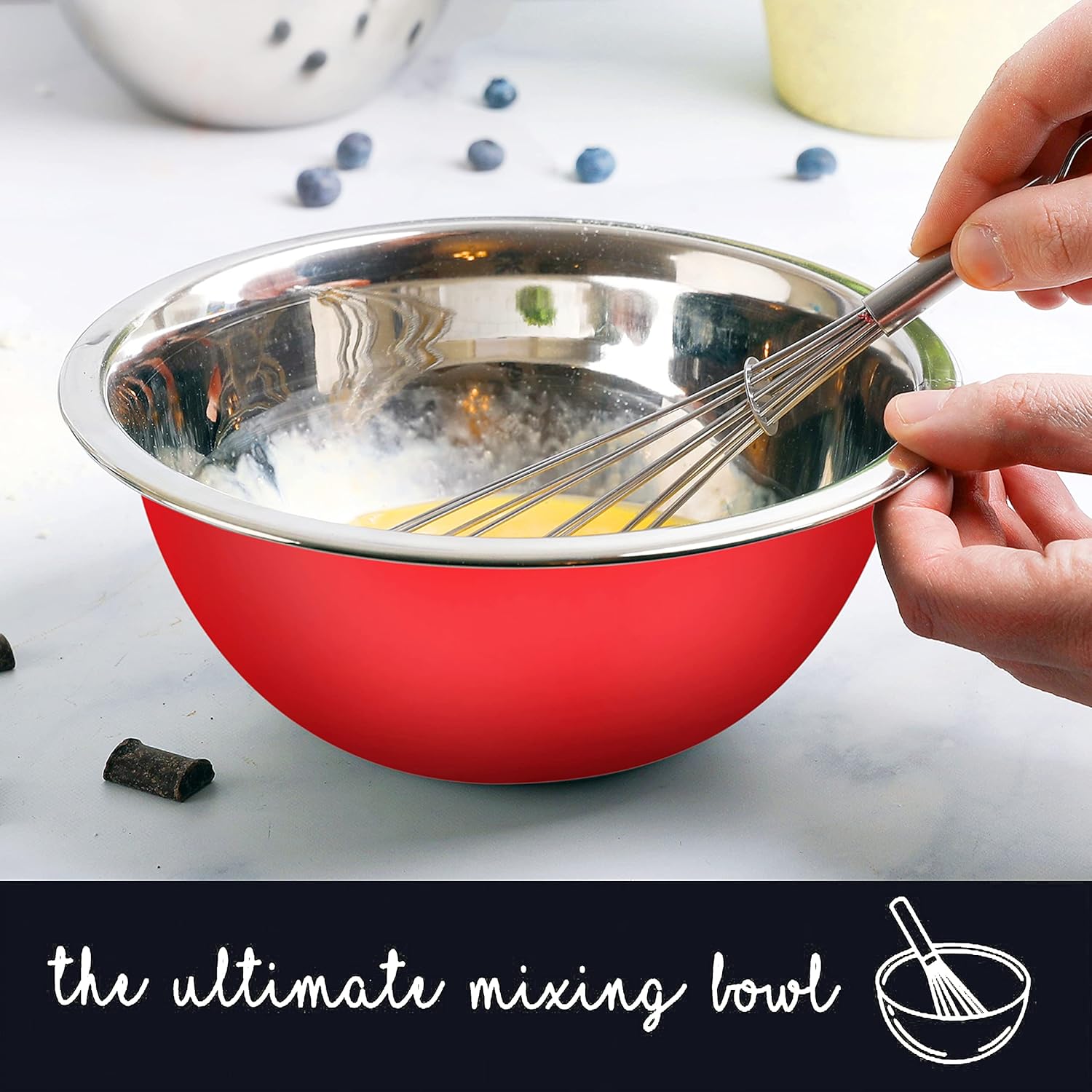 WHYSKO Meal Prep Stainless Steel Mixing Bowls Set, Home, Refrigerator, and Kitchen Food Storage Organizers | Ecofriendly, Reusable, Heavy Duty (Red)