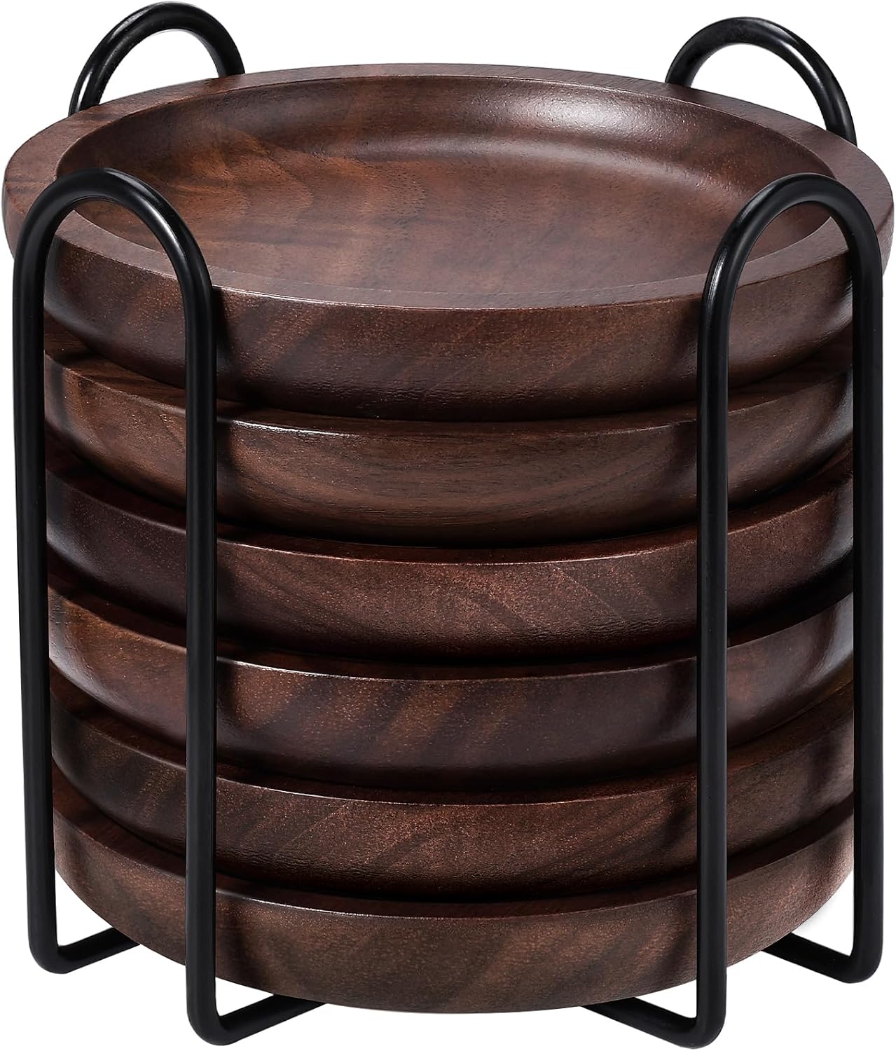 - MODERN AND STYLISH DESIGN: Coasters set of 6 are made of 100% natural walnut wood, which is so solid and strong material with stylish wooden look. They are Premium coasters with high durability. Each coaster has its own natural texture, perfectly matched with wooden or coffee, bar table, adding a sense of luxury of table layout