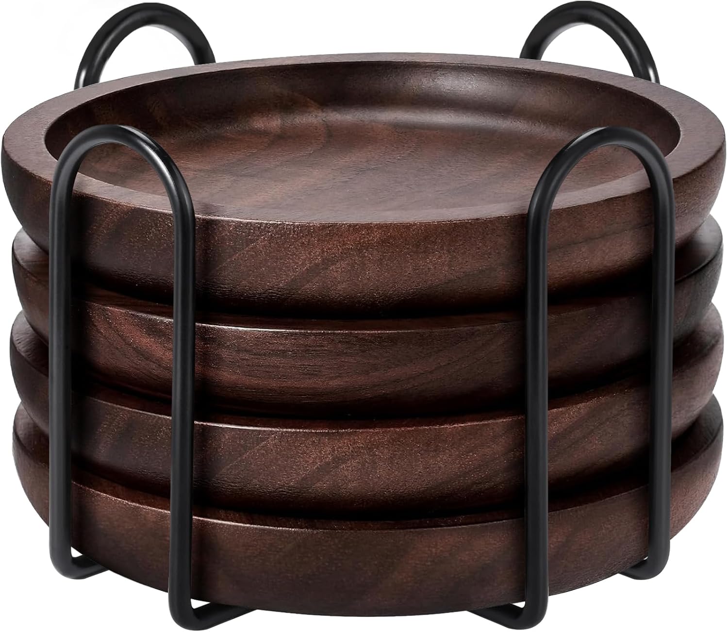 - IDEAL SIZE AND VERSATILE USE: 4 inch walnut coasters are perfect for various cup sizes, whether for hot coffee, cold drinks, or wine glasses. They are also an ideal gifts choice, sending warm greetings and a sense of style to family, love and friends, leaving a lasting impression. It's also a perfect choice of dining table decor, bar decor, coffee table decor