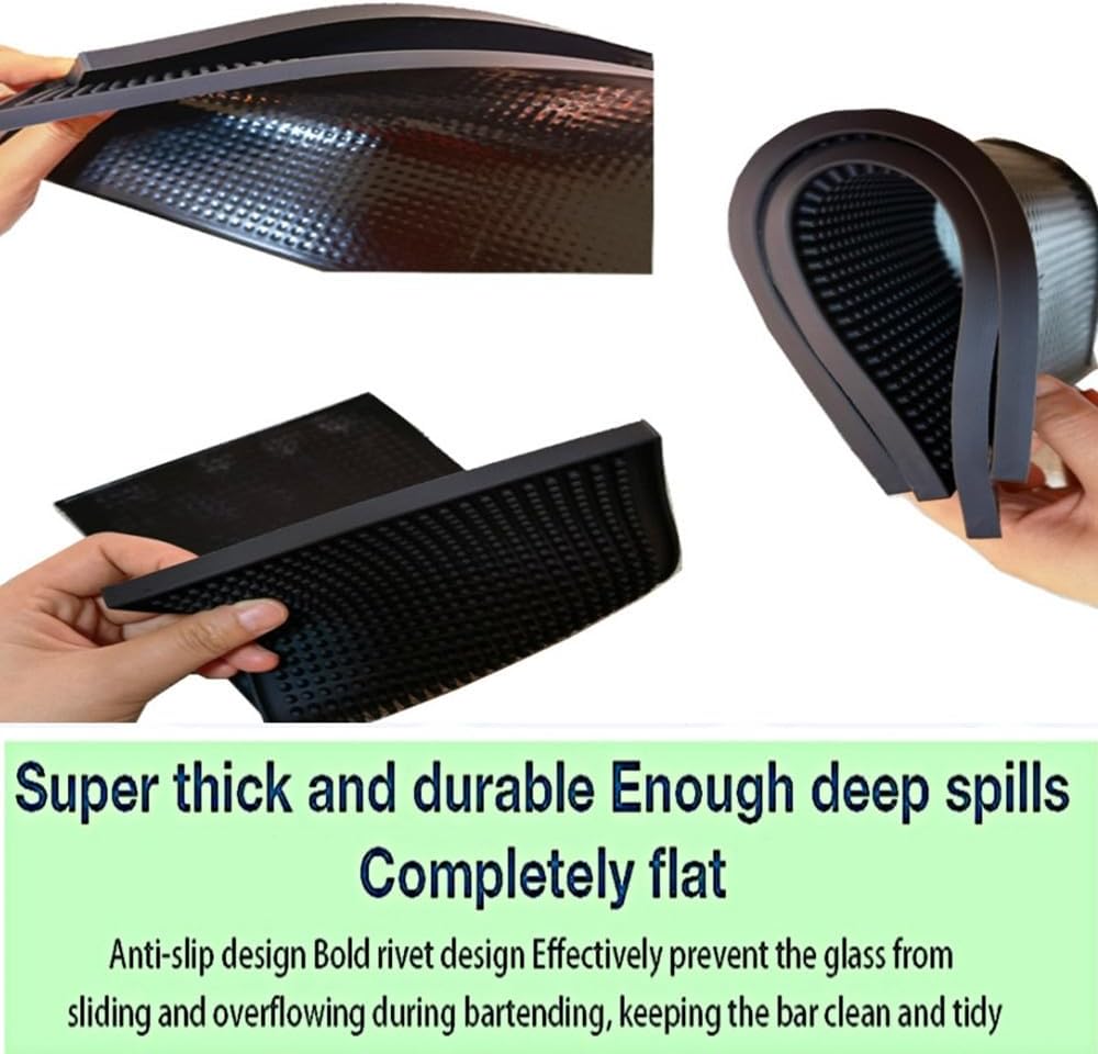 - Quality Material: our bar mat set is made from non toxic flexible rubber, ensuring a safe and healthy option for your home or workplace; Designed to be both thick and durable, these mats provide a long term solution to protecting your surfaces while offering a sleek black aesthetic look