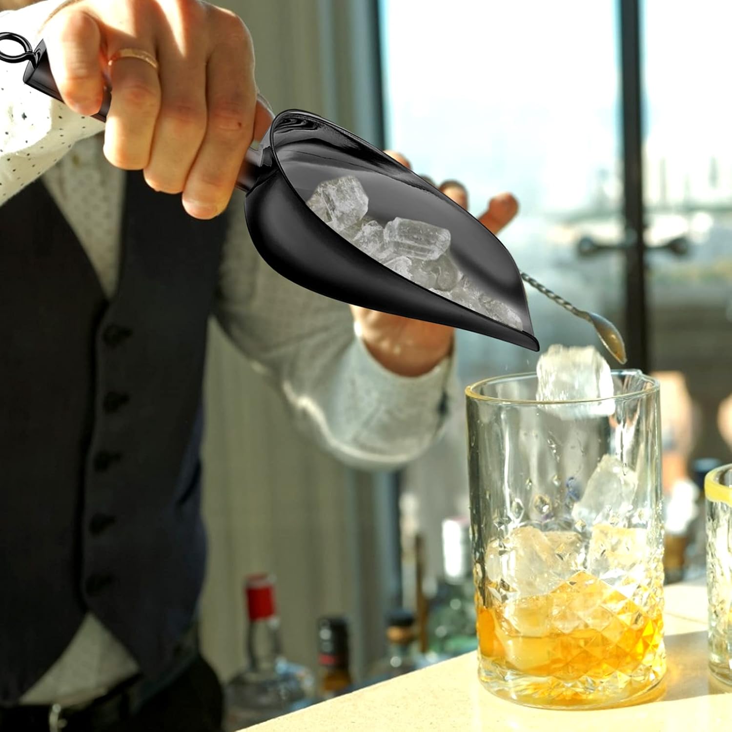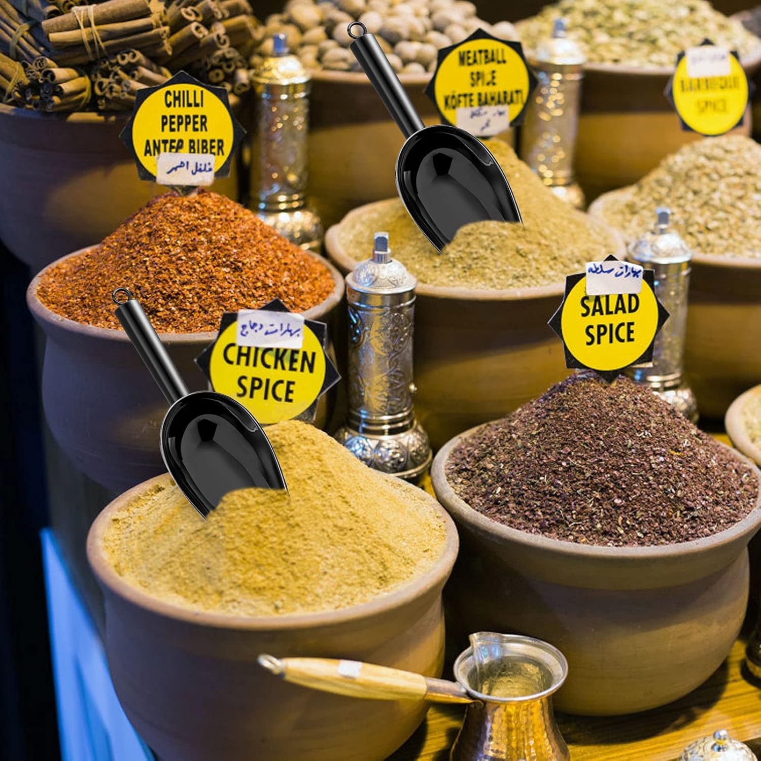 - Multi-Purpose: 5oz metal scoop, Overall length 8.2’’, Bowl 4.6’’ L x 2.7’’ W x 1.5’’ H, Handle 3.6’’ Compact size to scoop from small bins or containers, 2 pcs meet different uses to scoop ice cubes, coffee beans, grains and flour at the same time