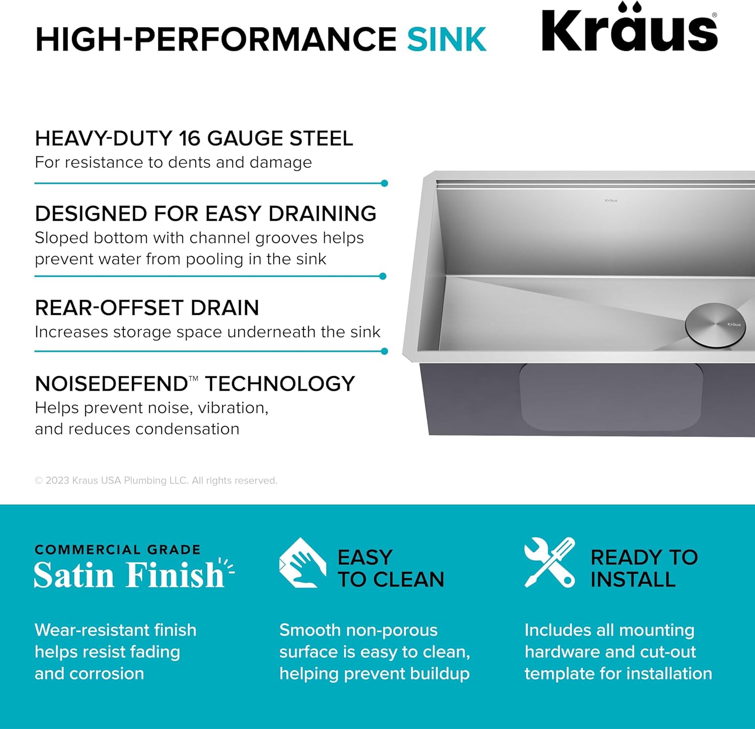 - HEAVY-DUTY 16 GAUGE SINK: Designed for lasting durability, high-performance TRU16 gauge stainless steel sink stands up to everyday use with great resistance to corrosion, dents, and damage