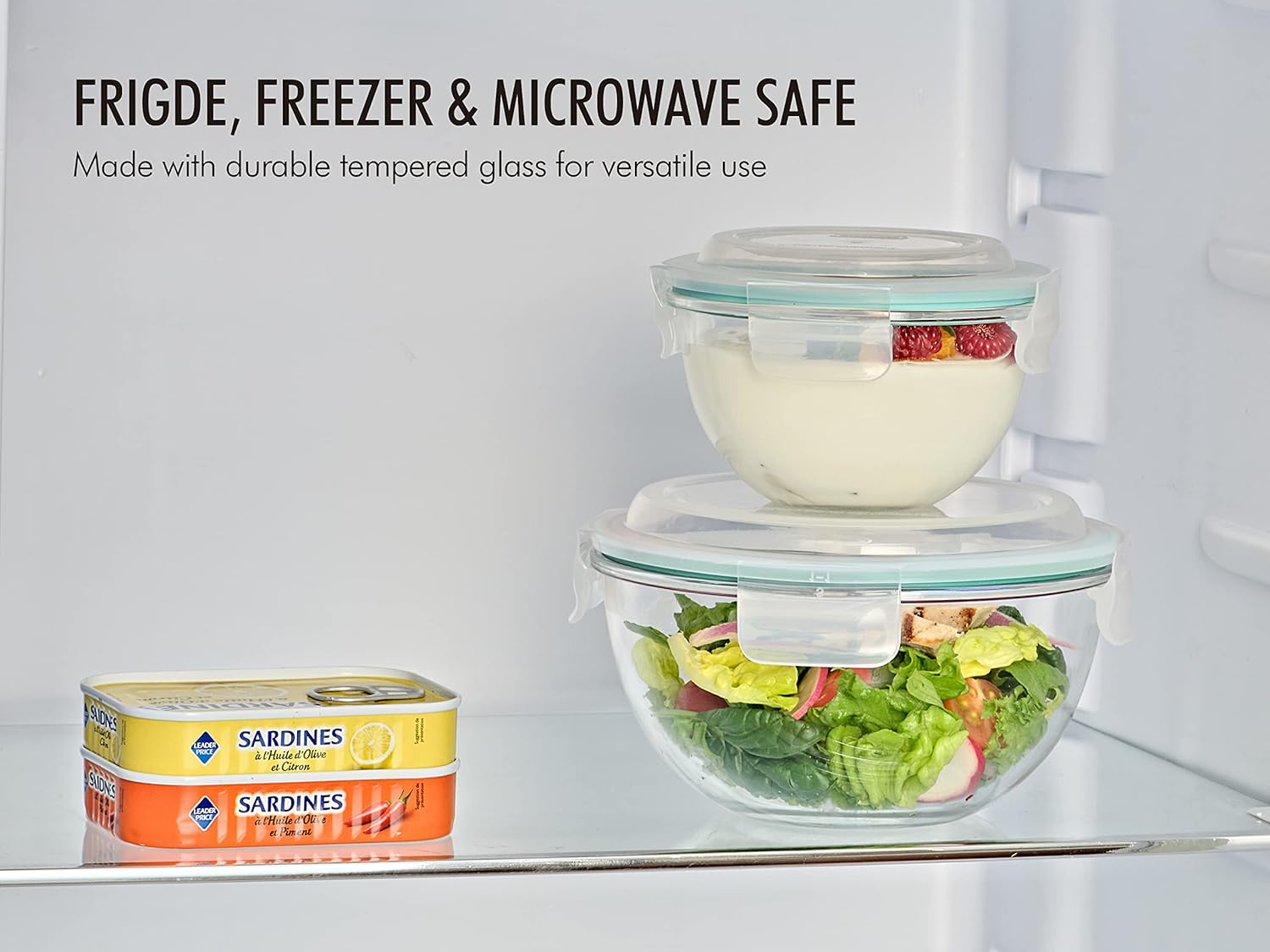 - AIRTIGHT & LEAK-PROOF - 4 side latching lid with optimized silicon gasket will keep the freshness of contents much longer than ordinary peel-off lids and prevents any odor slips in & out of the bowl in the fridge. Also lids are transparent to check the contents easily.