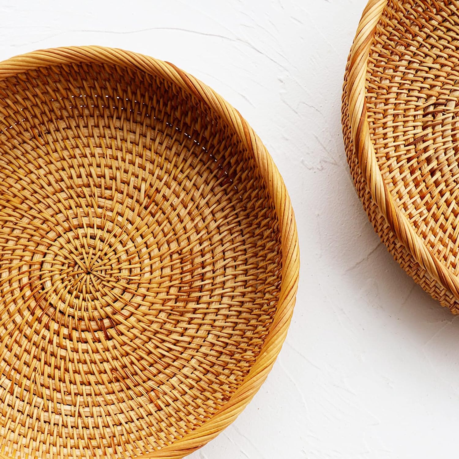 - Flat wicker basket bowl round serves snacks, fruits, bread during ur slow down and relaxing time, also works as a kitchen organizer and home décor.