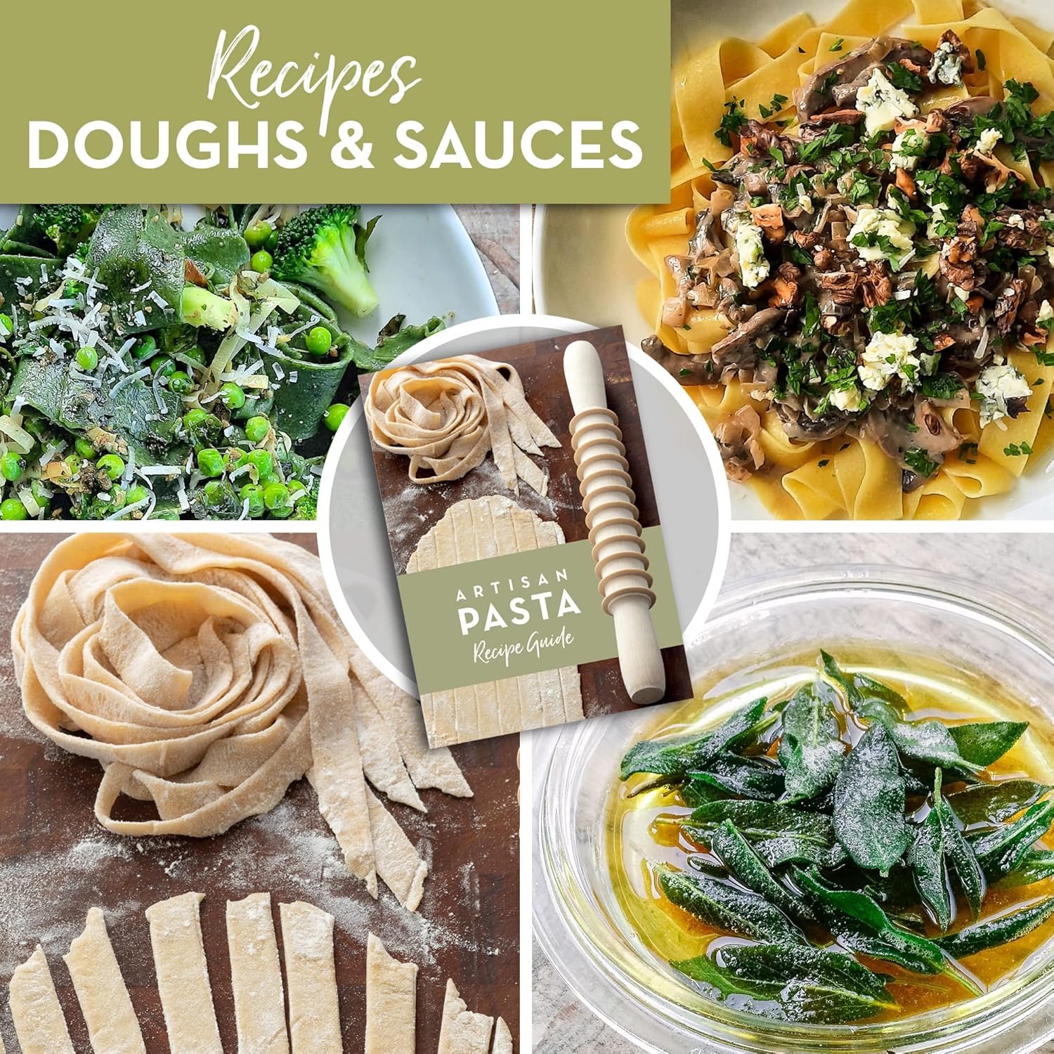 Wooden Pasta Cutter Pappardelle Pasta Maker Rolling Pin Made in Italy with Pasta Recipes
