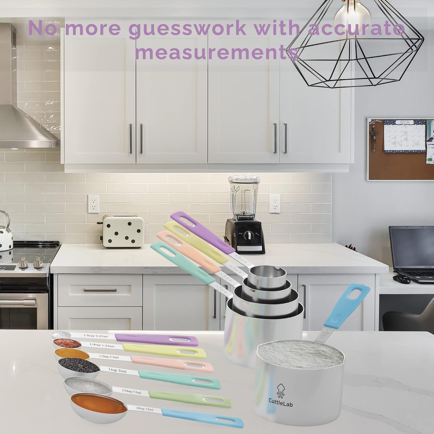 - No more guessing - The measurements on each metal measuring cups are clearly engraved, using both imperial (e.g., 1 cup) and metric (e.g., 250 ml). Attractive color coding helps instant identification of your measuring spoons and cups.