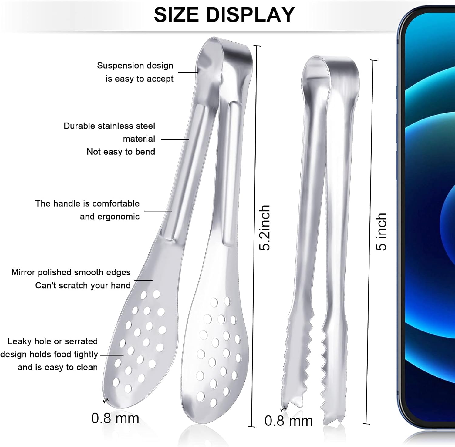- Mirror polished stainless steel mini tongs : sturdy and rust proof. That means superior quality and corrosion resistance, safe for years of using and easy to handle.