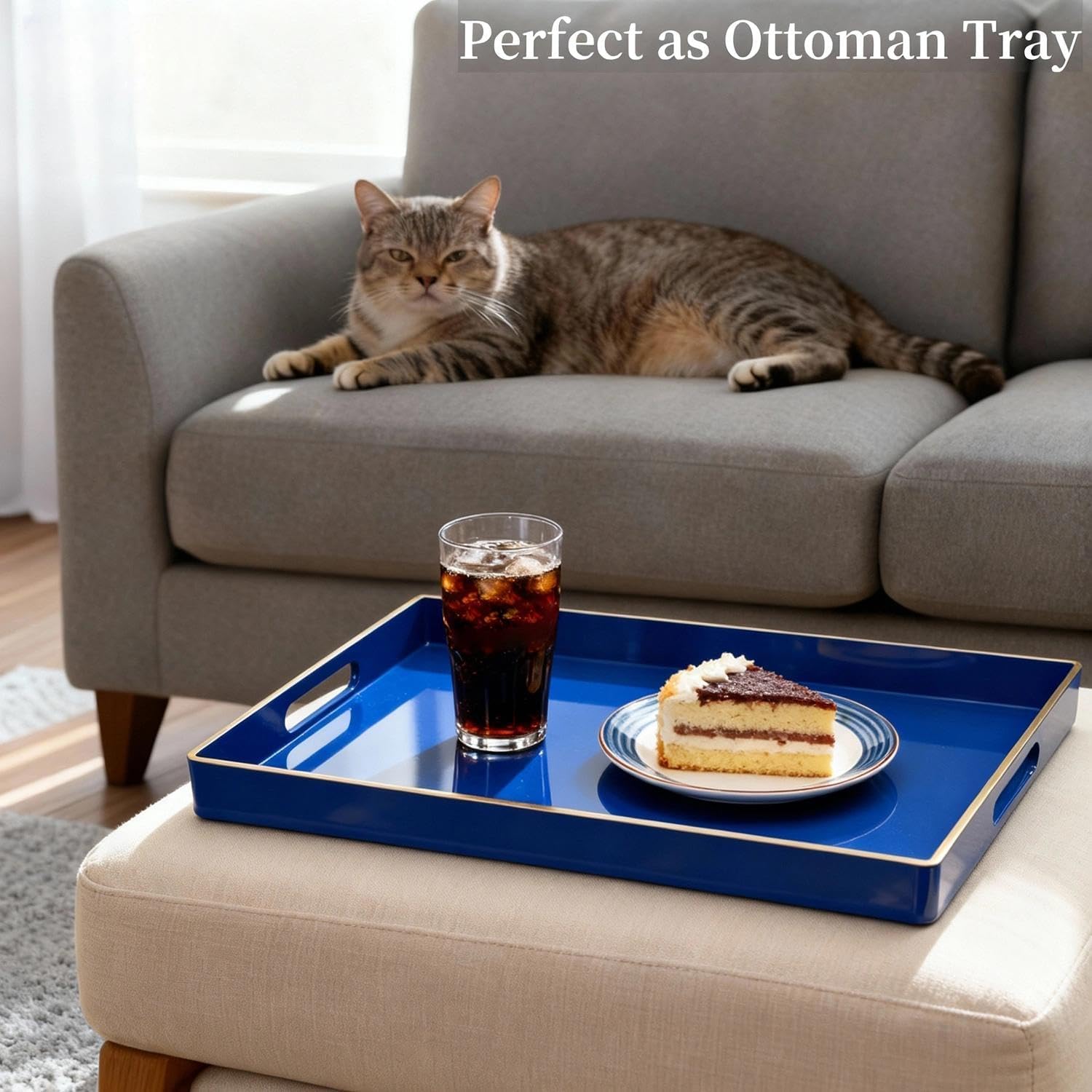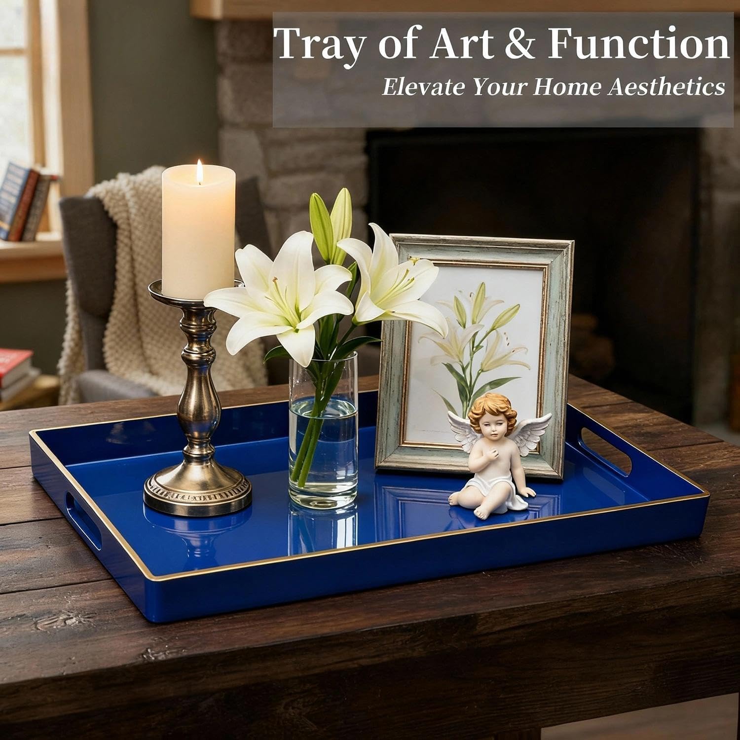 - Vibrant Color - Chic rectangular shape fully covered with glossy blue coating with gold top edge, this outstanding decorative tray can easily make your things more stunning, adding a classy and energetic touch.