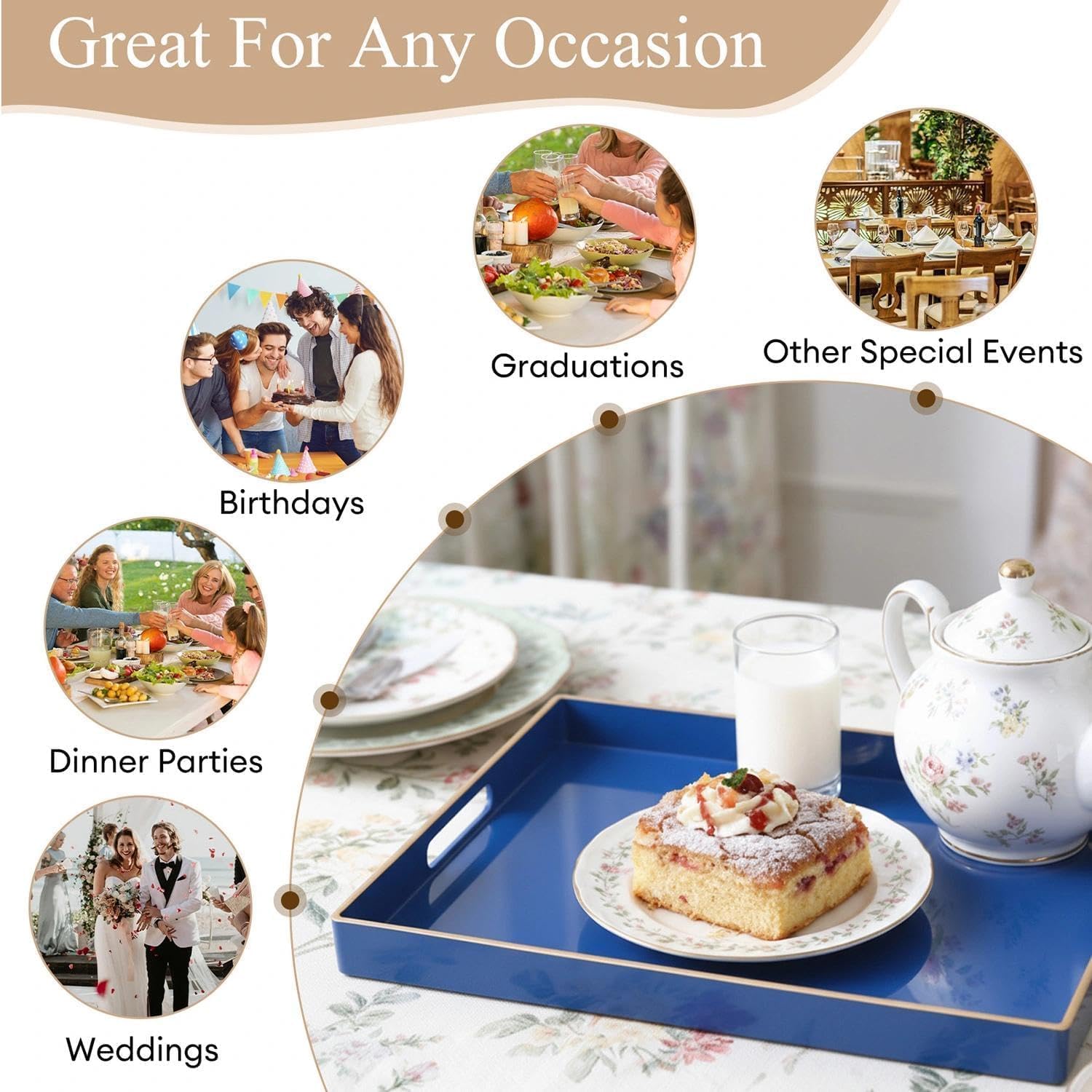 - Useful for All - With its gorgeous look and multiple functions, this will be a pretty accent tray to ottoman, coffee table, dining table, nightstand, vanity table etc. Except for daily use, it¡¯s also a reliable helper for different occasions like Christmas, birthday, wedding, baby shower, housewarming and other parties.