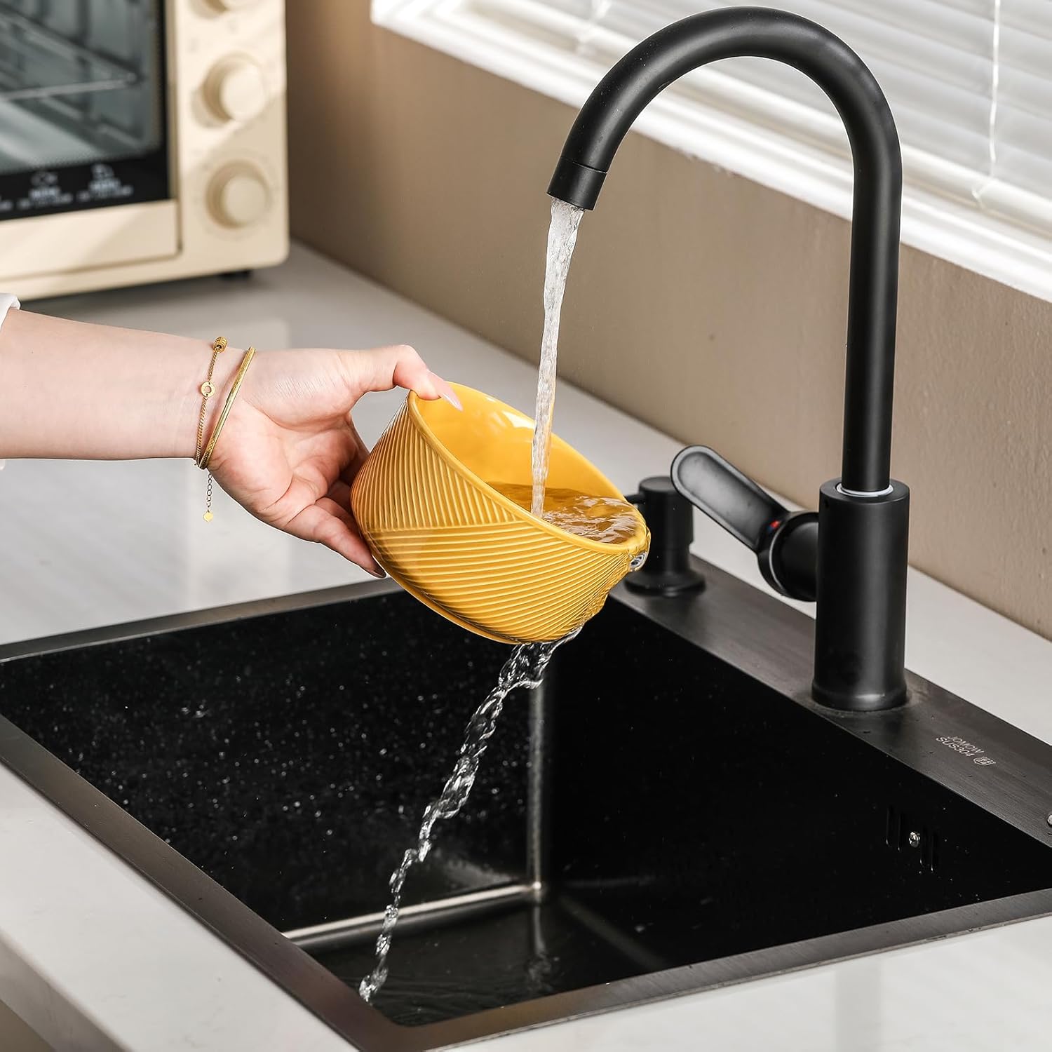 - Good Design: The lid is made of PP with a silicone seal inside to provide a good seal. The bowl is deep and straight in shape and has a large capacity. The surface has stripes and a smooth glaze, which feels good and prevents slipping. Stackable design