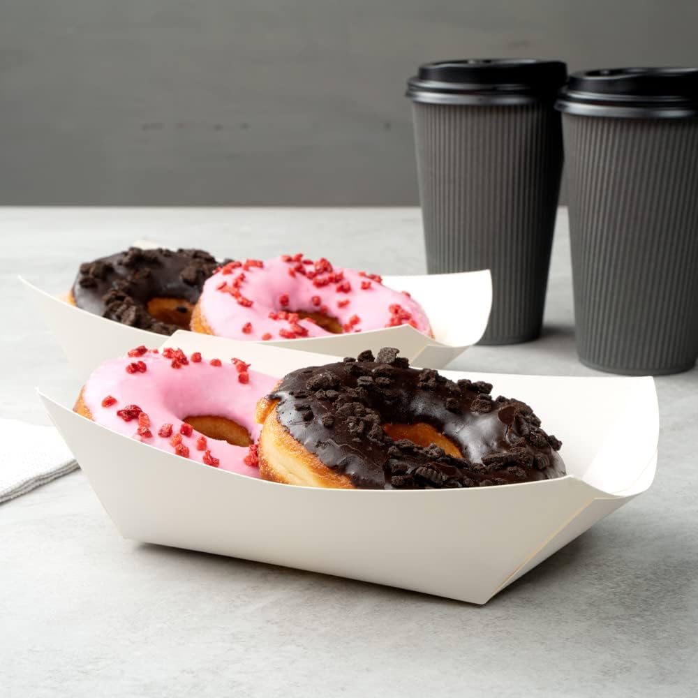 - VERSATILE AND DURABLE: Made from premium paper, these food boat trays are an easy, neat and portable serving solution for finger foods, sandwiches, wraps, and desserts.