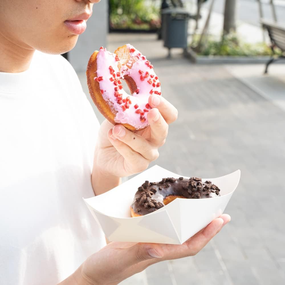 - GREASE-RESISTANT PROTECTION: These white paper trays feature a grease-resistant lining to prevent leaks and keep foods like nachos and hot dogs mess-free. Great for food trucks and outdoor events.