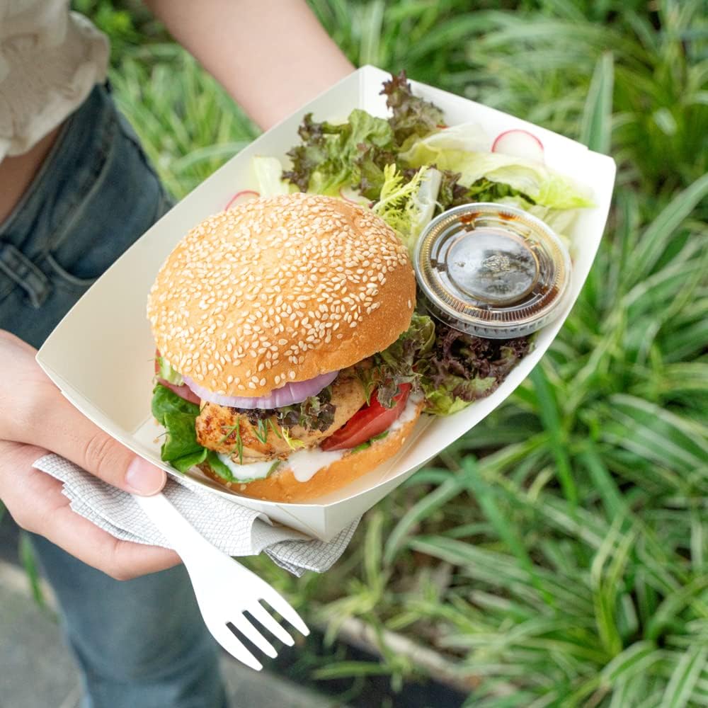 - VERSATILE AND DURABLE: Made from premium paper, these food boat trays are an easy, mess-free and portable serving solution for finger foods, sandwiches, wraps, and desserts.
