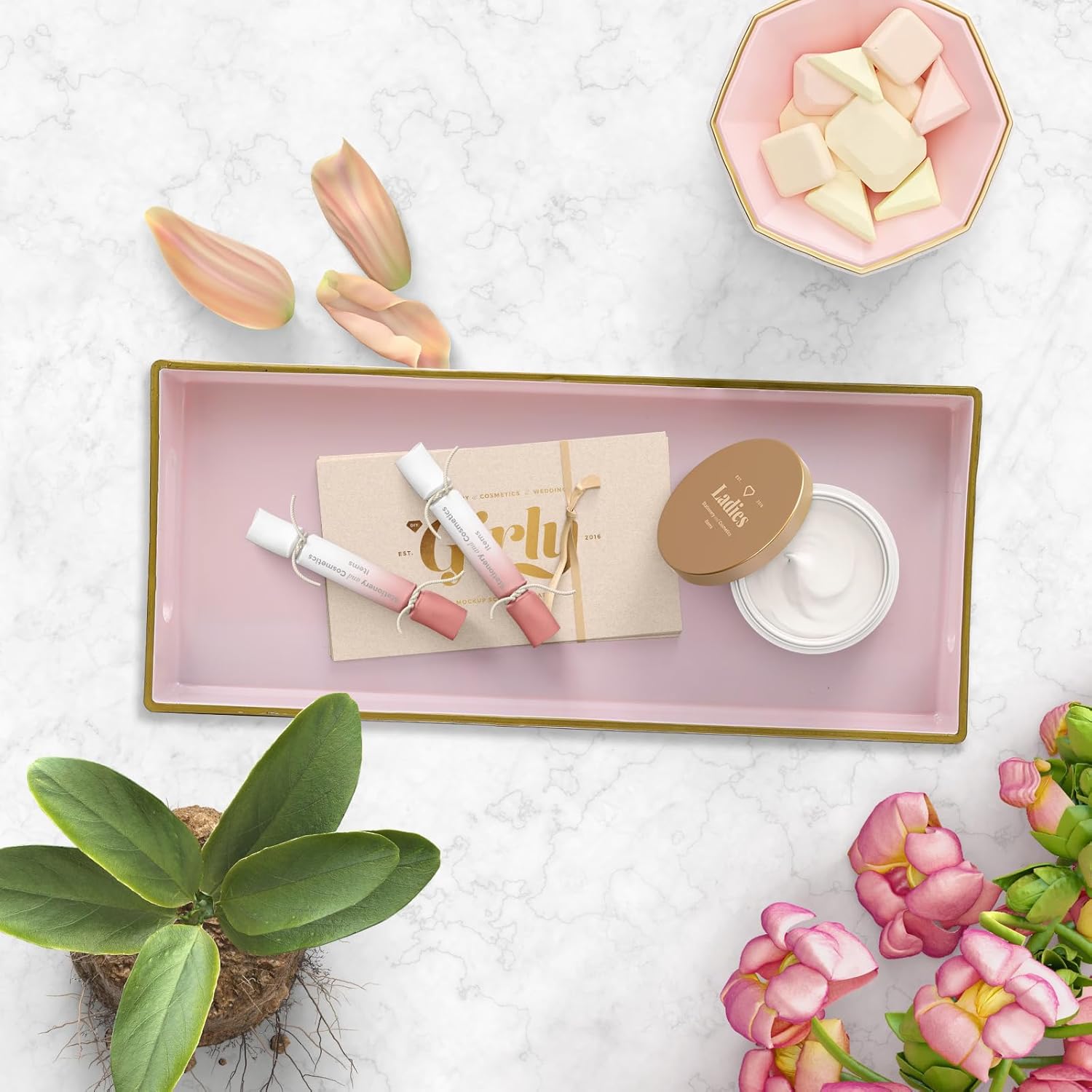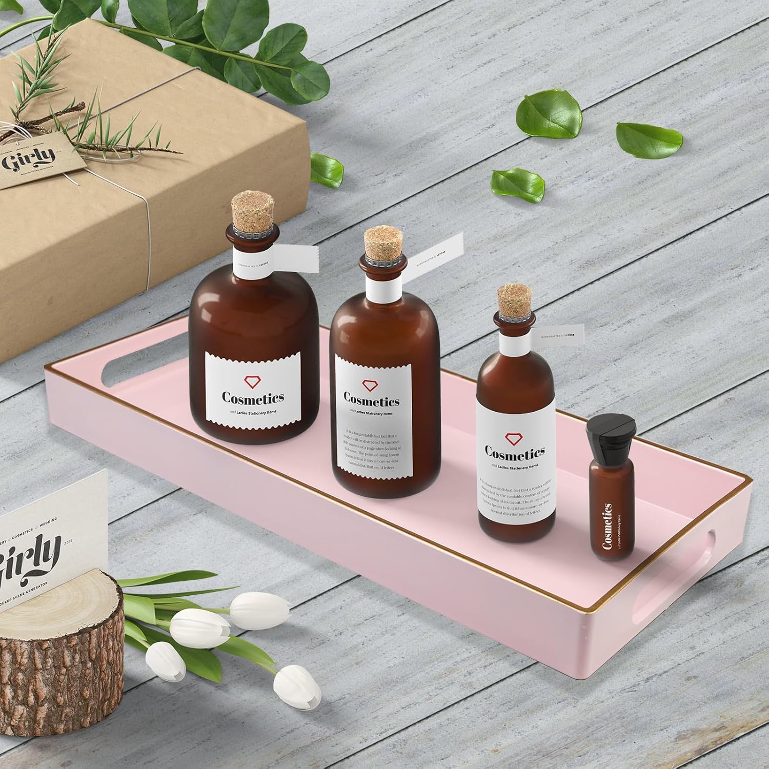 Pink Vanity Tray with Handles, Decorative Tray Desktop Storage Organizer for Bathroom, Living Room, 5.9"*13.7"