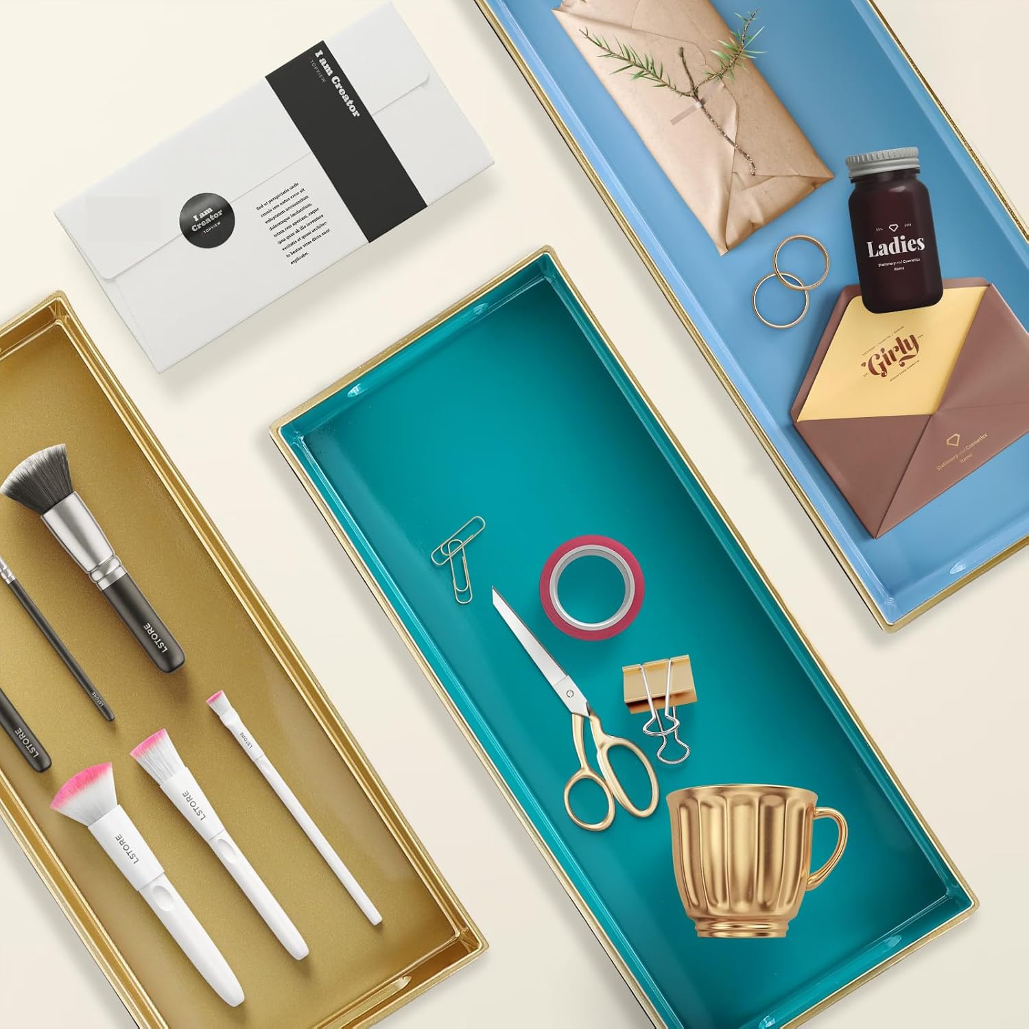 - Home Decor Tray: Decorative designs for jewelry, perfume bottles, hair brushes, cosmetics, dolls, and artworks. It is great for displaying, decorating, organizing, and storing