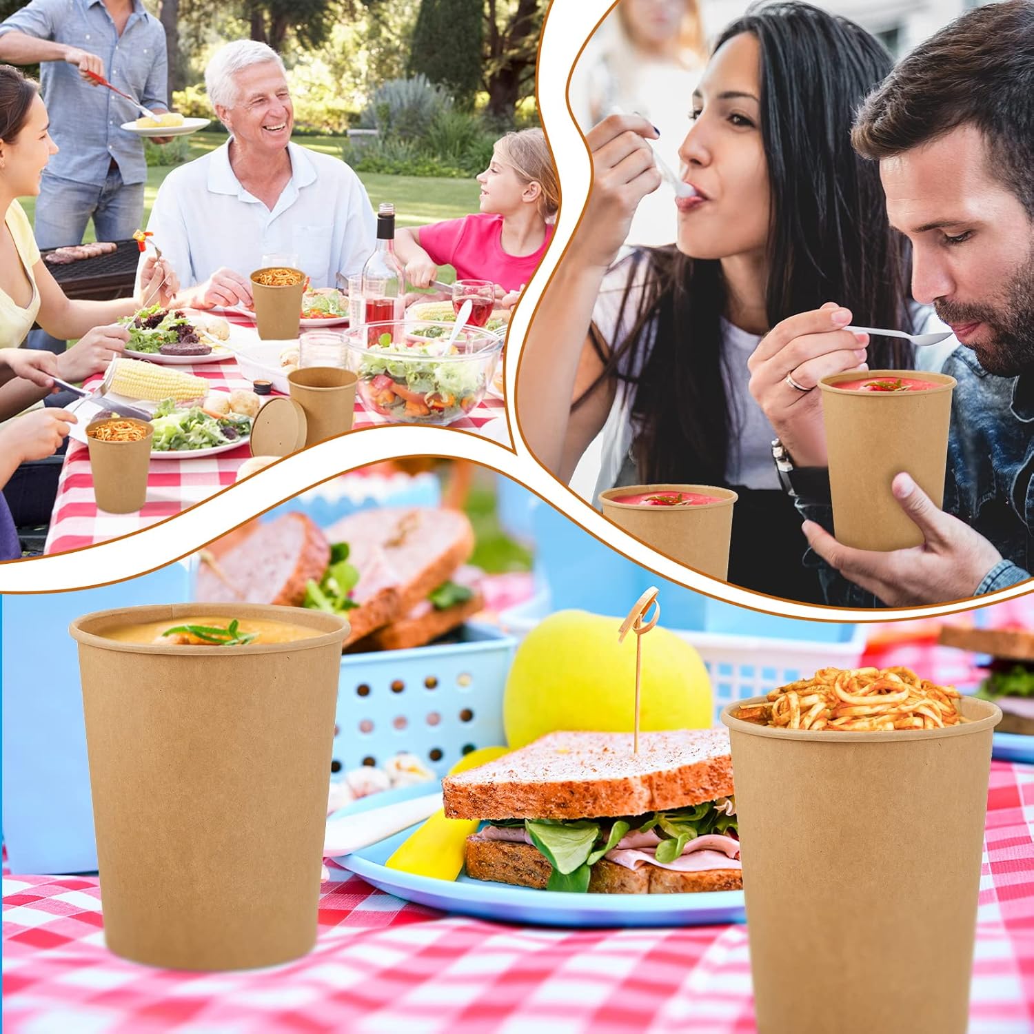 - Vented Lids: the paper soup bowls are featured with vented lids design, can release hot air to prevent the containers from soaking wet, while still maintaining the temperature, and it can prevent dampness from accumulating inside; The top seal is firm, which helps to keep food fresh for a long time