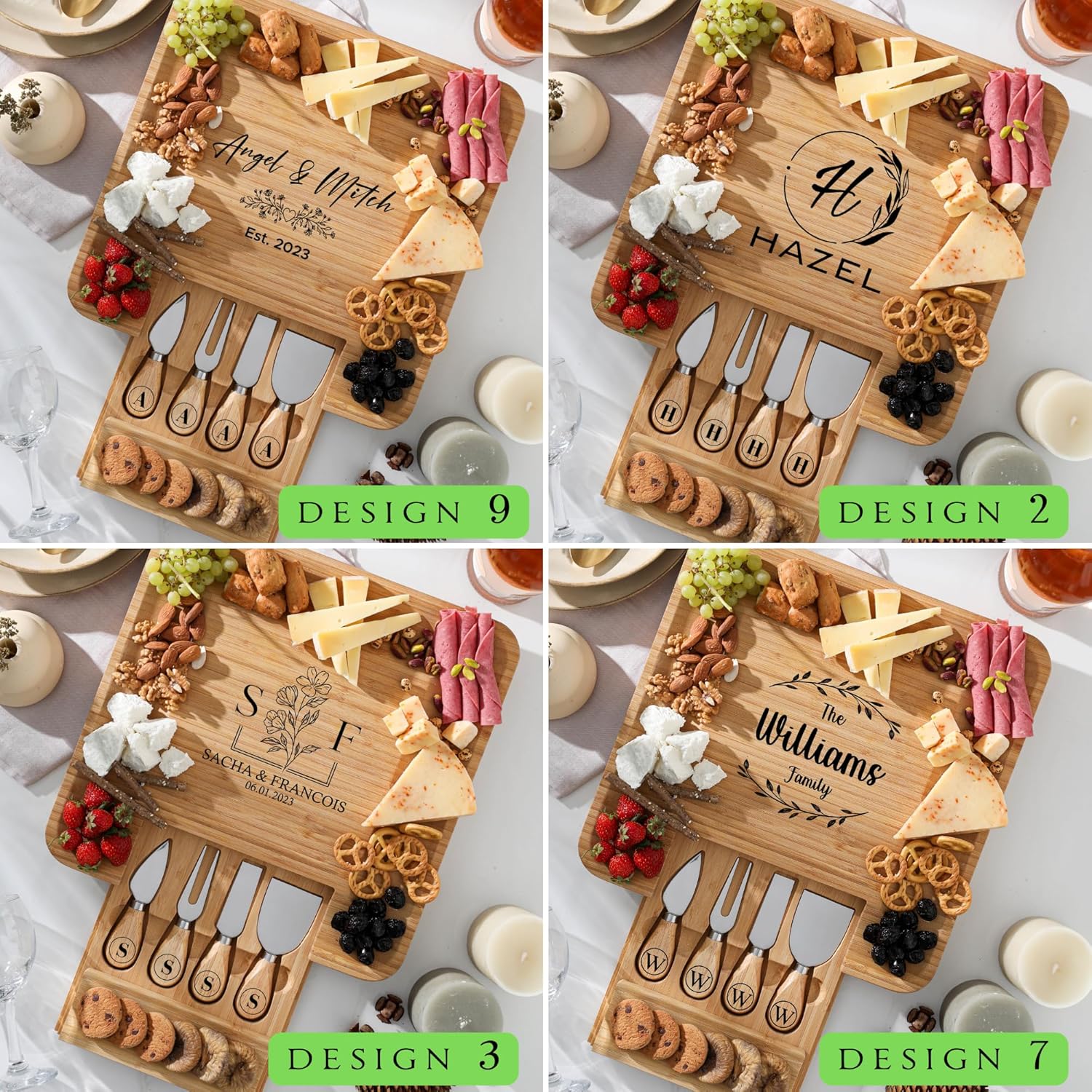 - Customizable Design: Each charcuterie boards cheese board can be personalized with names, dates, or unique messages, making it a perfect gift for special occasions like weddings, anniversaries, engagements, Christmas and more. This added touch of personalization ensures your gift is unique and memorable, tailored to celebrate the recipient's special moments. The durable and long-lasting engraving ensures it makes a perfect gift option that stands the test of time