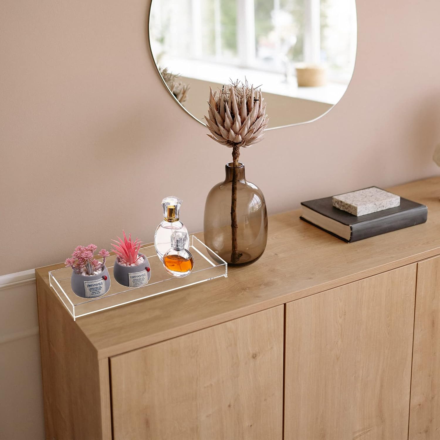 - Size Detail: this clear acrylic tray measures approx. 11.8 x 5.0 x 1.2 inches/ 30 x 12.7 x 3.05 cm, portable and lightweight, the right size is easy to store and display without taking up too much space, and this tray can keep the tabletop clean and tidy